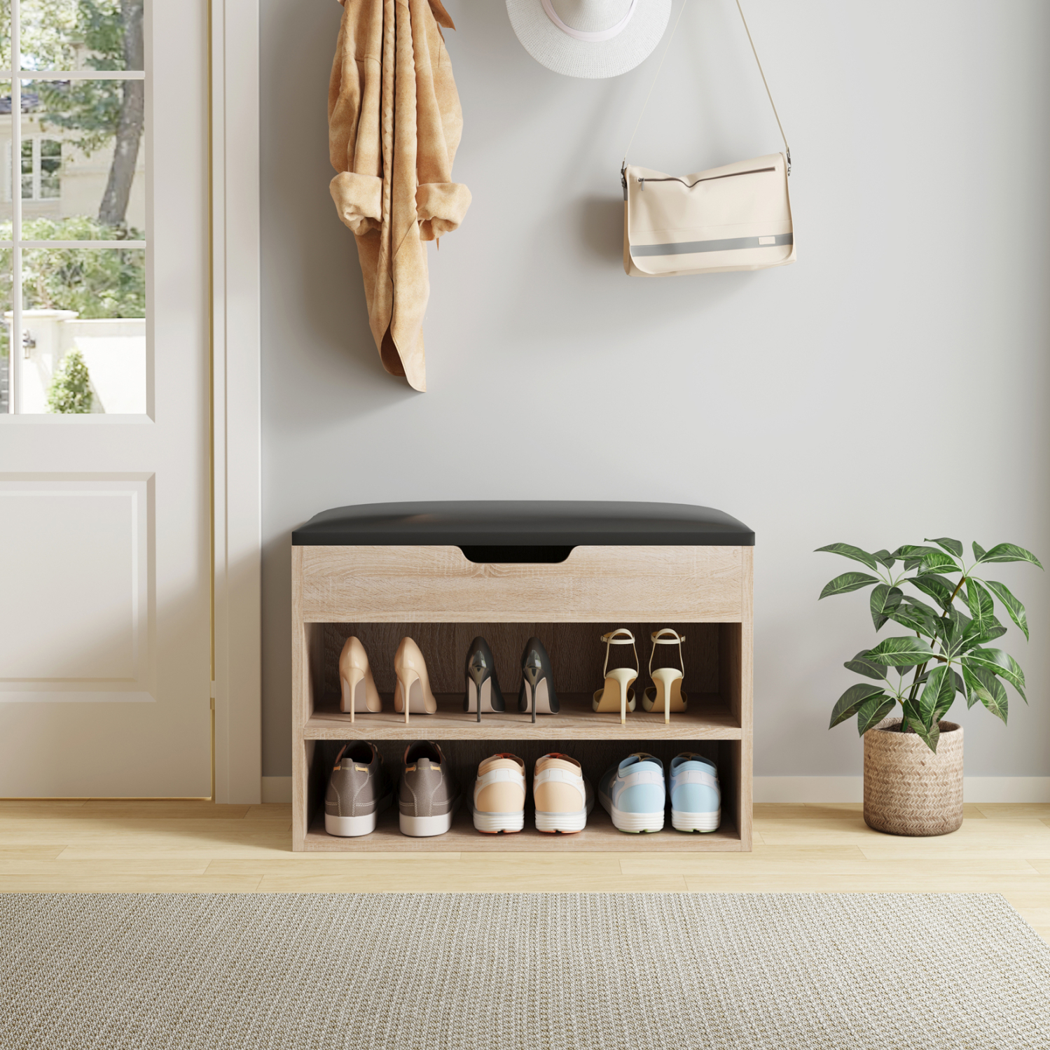 Η παπουτσοθήκη είναι εύκολη στην συντήρησή της. Η κατασκευή της από μελαμίνη της επιτρέπει να είναι ανθεκτική στην τριβή, τις γρατσουνιές και τους λεκέδες. Κατ’ επέκταση, καθαρίζεται εύκολα με ένα υγρό πανί, όπως και το κάθισμα από PU.