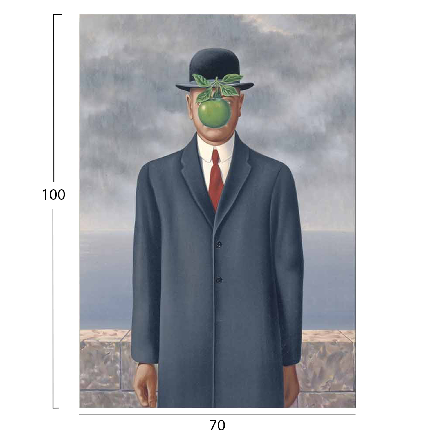 Ένας πίνακας τοίχου μεταμορφώνει τον τρόπο που αντιλαμβανόμαστε έναν χώρο. Διακοσμήστε, λοιπόν, τον χώρο σας με την καινούργια μας σειρά πινάκων τοίχου GOBI! Αυτός ο πίνακας που απεικονίζει ένα άνδρα με ψηλό καπέλο κι ένα μήλο, έχει υλοποιηθεί σε εκτυπωμένο SUEDE καμβά με πλαίσιο από ξύλο.