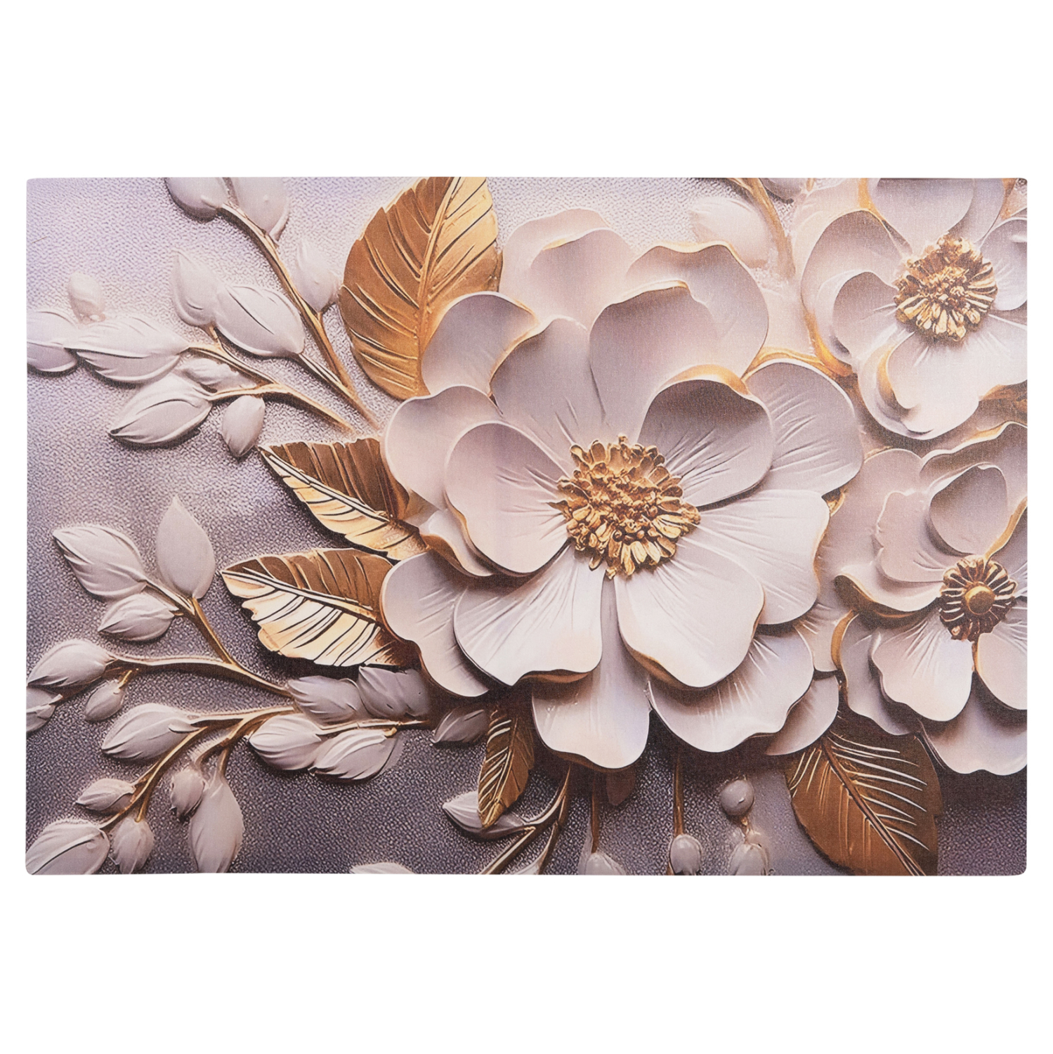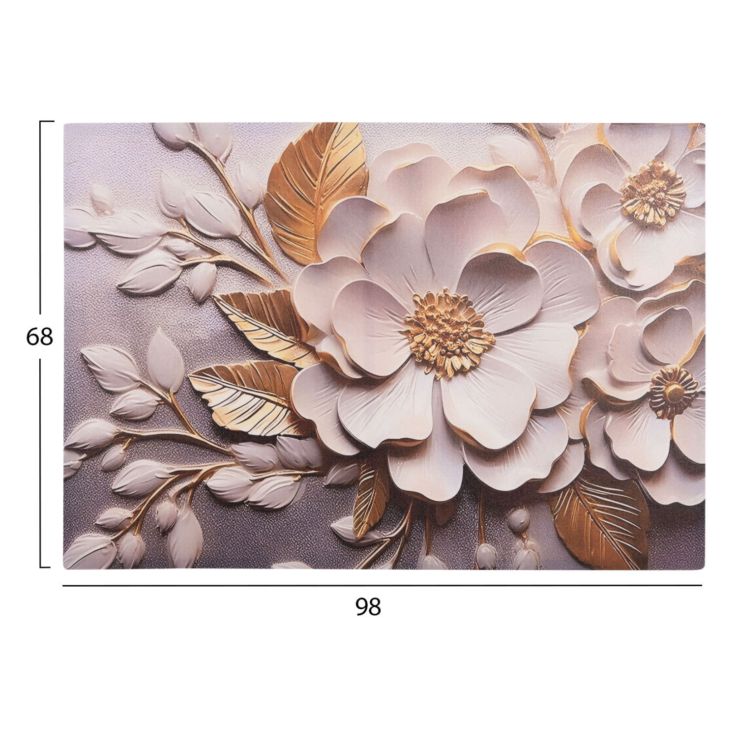 Ένας πίνακας τοίχου μεταμορφώνει τον τρόπο που αντιλαμβανόμαστε έναν χώρο. Διακοσμήστε, λοιπόν, τον χώρο σας με την καινούργια σειρά πινάκων τοίχου GOBI! Αυτός ο πίνακας απεικονίζει λουλούδια σε λευκό και χρυσό χρώμα, και έχει υλοποιηθεί σε εκτυπωμένο καμβά με πλαίσιο από ξύλο πεύκου.