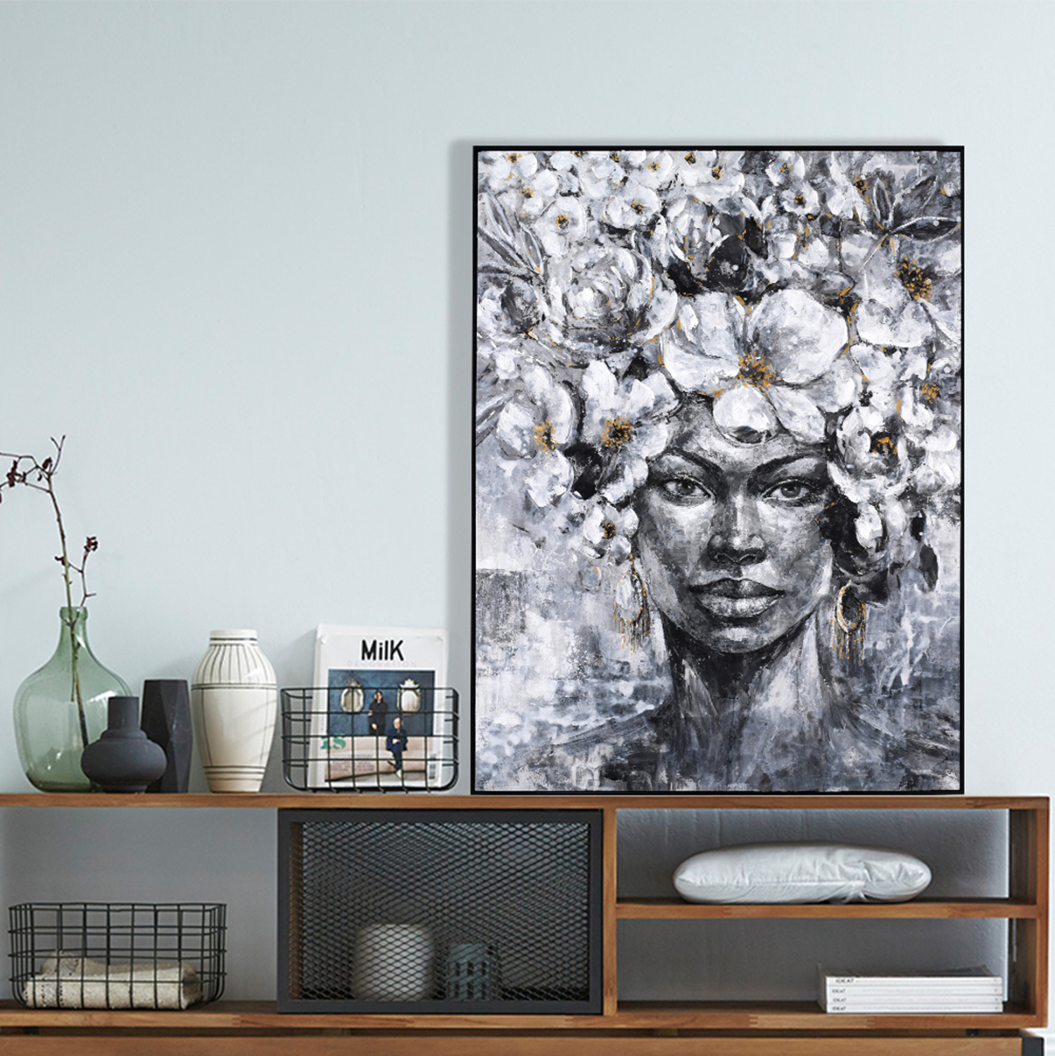 Ανάμεσα σε όλα τα διακοσμητικά στοιχεία, τα έργα τέχνης και ειδικά οι πίνακες ζωγραφικής παίζουν εξέχοντα ρόλο: όχι μόνο προσθέτουν χρώμα και αισθητική ομορφιά, αλλά δίνουν επίσης βάθος και νόημα στον χώρο μας. Ένας πίνακας μεταμορφώνει τον τρόπο που αντιλαμβανόμαστε έναν χώρο. Διακοσμήστε, λοιπόν, τον χώρο σας με έναν από τους καινούργιους πίνακες που προστέθηκαν στην γκάμα μας! Αυτός ο πίνακας απεικονίζει το πρόσωπο μιας γυναίκας και είναι ζωγραφισμένος κατά 80% με το χέρι σε καμβά με εκτύπωση. Η κορνίζα είναι μαύρη από πολυστυρένιο.