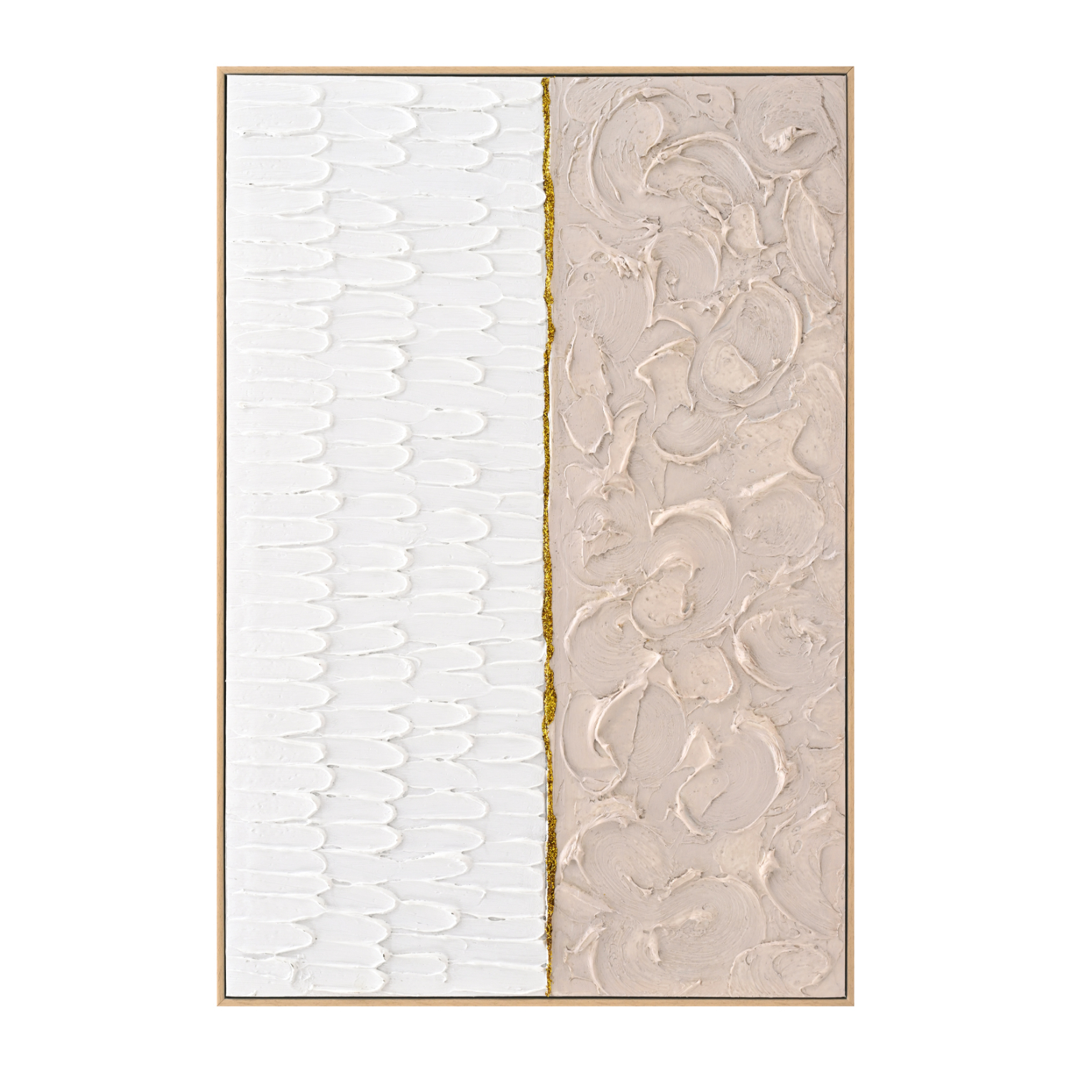 Ανάμεσα σε όλα τα διακοσμητικά στοιχεία, τα έργα τέχνης και ειδικά οι πίνακες ζωγραφικής παίζουν εξέχοντα ρόλο: όχι μόνο προσθέτουν χρώμα και αισθητική ομορφιά, αλλά δίνουν επίσης βάθος και νόημα στον χώρο μας. Ένας πίνακας μεταμορφώνει τον τρόπο που αντιλαμβανόμαστε έναν χώρο. Διακοσμήστε, λοιπόν, τον χώρο σας με έναν από τους καινούργιους πίνακες που προστέθηκαν στην γκάμα μας! Αυτός ο πίνακας είναι ζωγραφισμένος 100% με το χέρι και είναι χωρισμένος στην μέση με τις δύο πλευρές να είναι σε ΜΠΕΖ και ΛΕΥΚΟ αντίστοιχα. Η κορνίζα είναι ΜΠΕΖ από πολυστυρένιο.