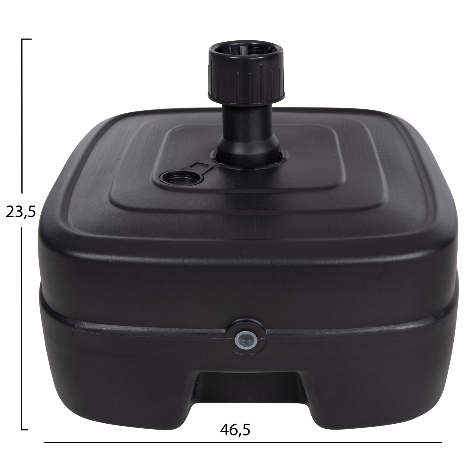 Η SOLBAS είναι η νέα προσθήκη στην γκάμα μας στην κατηγορία των βάσεων για ομπρέλες θαλάσσης. Πρόκειται για μια τετράγωνη πλαστική βάση σε ΑΝΘΡΑΚΙ χρώμα, που έχει όλα τα απαραίτητα χαρακτηριστικά που την κάνουν στιβαρή αλλά και πρακτική! Διαθέτει ρόδα μεταφοράς και φυσικά την ρυθμιζόμενη υποδοχή για κοντάρι ομπρέλας. Το κοντάρι θα πρέπει να είναι διαστάσεων 33/50mm.
