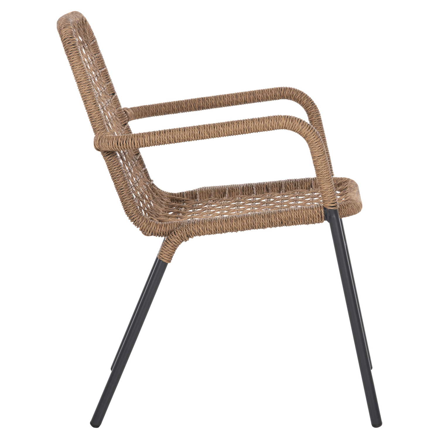 Η πολυθρόνα είναι επενδυμένη με πολυεστερικό (συνθετικό) RATTAN σε πλέξη wicker. Το Wicker δεν είναι υλικό, είναι μέθοδος κατασκευής επίπλων κυρίως για εξωτερικούς χώρους. Πρόκειται για μια αρχαία τεχνική, κατά την οποία οι τεχνίτες περνούν το φυσικό ή συνθετικό υλικό από ατμό και στη συνέχεια το λυγίζουν στο σχήμα που θέλουν, ή το πλέκουν. Η πλέξη wicker έχει γίνει με πολυεστερικές ίνες υψηλής ποιότητας και αντοχής ανθεκτικές σε ακραίες καιρικές συνθήκες ζέστης ή κρύου.