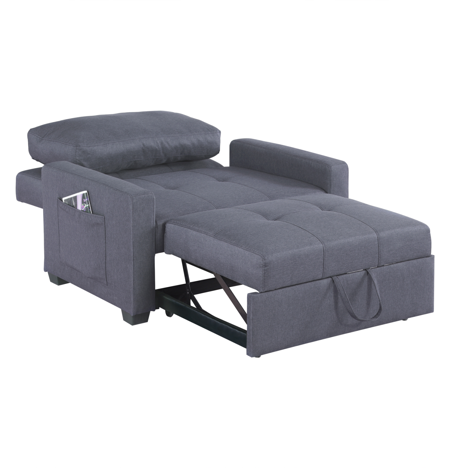 Η πολυθρόνα-κρεβάτι ΚΑΝΝΑ είναι η επιτομή της πρακτικότητας και του όμορφου στυλ. Πρόκειται για μια κοντή πολυθρόνα επενδυμένη με ΓΚΡΙ ποιοτικό ύφασμα και με φαρδύ κάθισμα. Τα μπράτσα είναι κοντά με πρακτικές θήκες για μικροπράγματα στην εξωτερική τους πλευρά, και το αναπαυτικό μαξιλάρι στην πλάτη ολοκληρώνει την σύνθεση. Το στοιχείο που την κάνει να ξεχωρίζει, όμως, είναι ότι με μια απλή κίνηση μπορεί να μετατραπεί σε κρεβάτι προσφέροντας μια ποιοτική λύση για απρόσμενες διανυκτερεύσεις, ή ακόμα και ως δεύτερο κρεβάτι σε σπίτια με περιορισμένο χώρο, όπως φοιτητικά σπίτια.