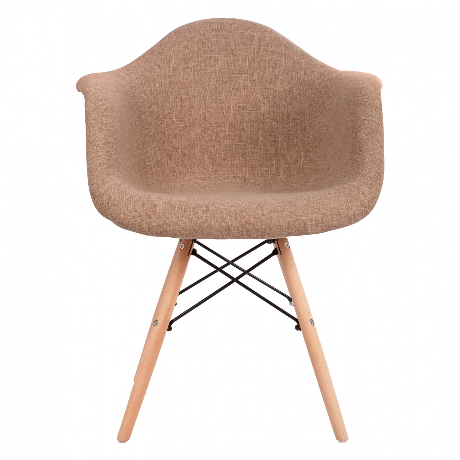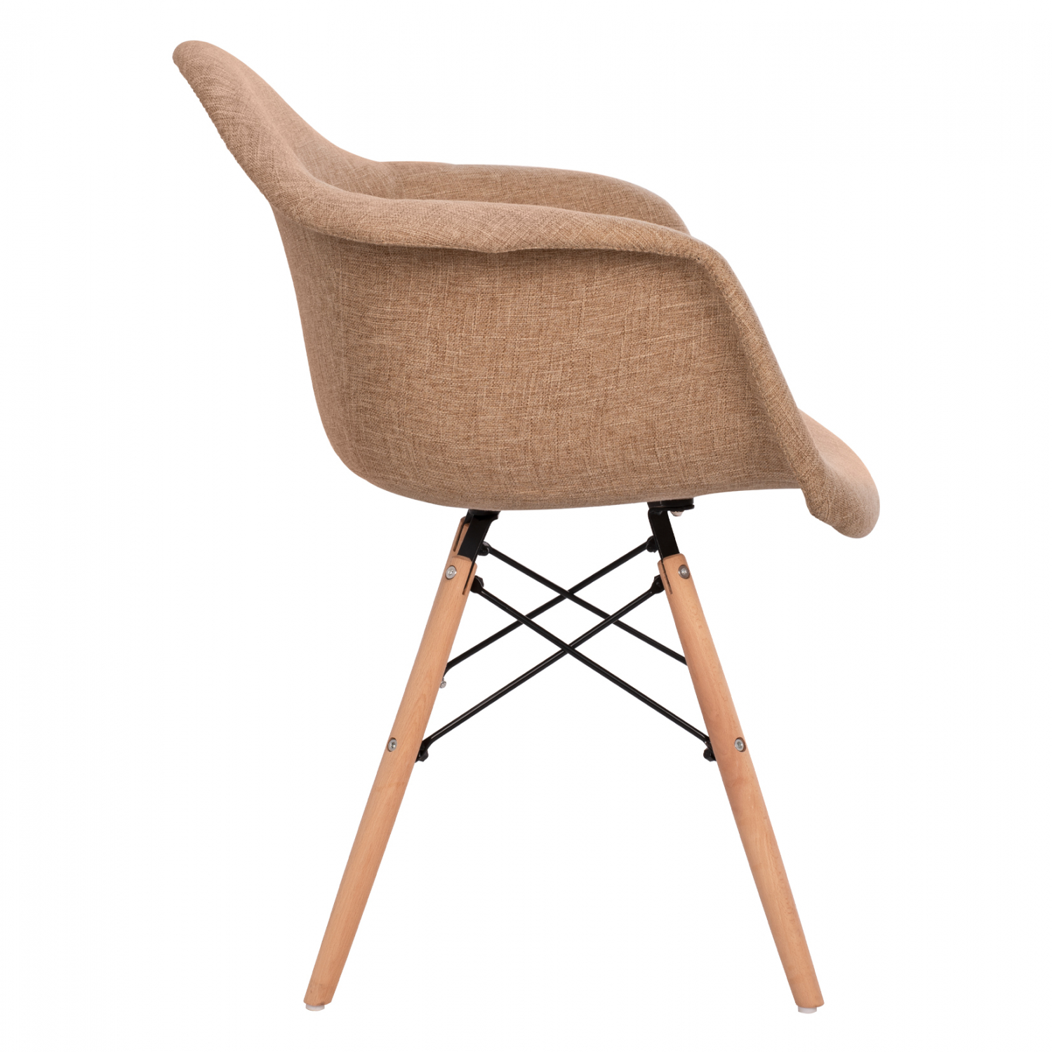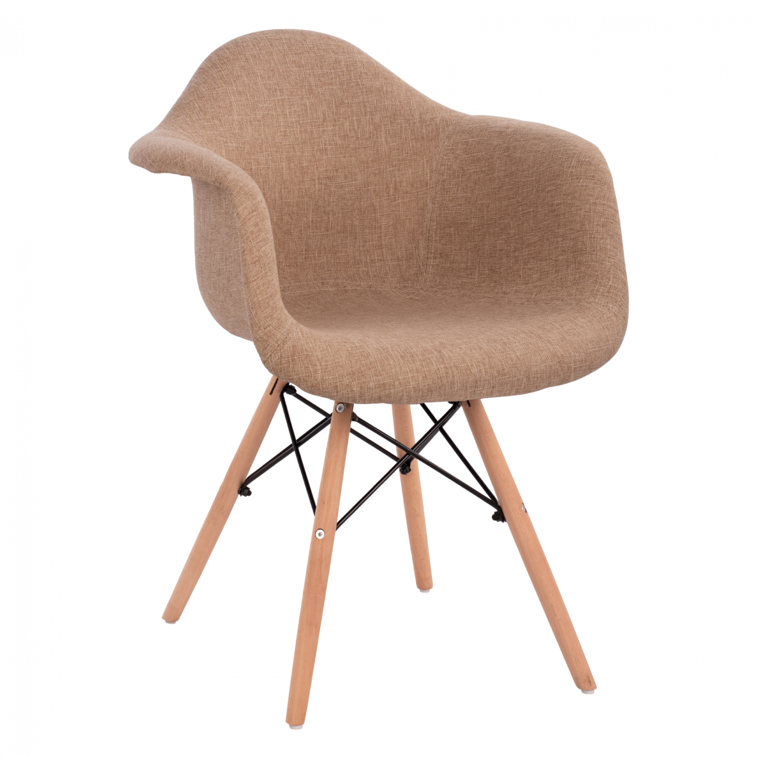 Μοντέρνα πολυθρόνα με μπεζ ύφασμα και φυσικά πόδια οξιάς. Ταιριάζει με όλα σχεδόν τα στιλ και είναι μια καρέκλα σταθμός στην ιστορία του design.