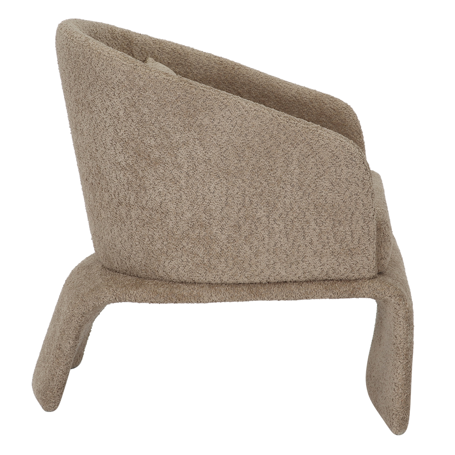 Ο σκελετός της πολυθρόνας είναι μεταλλικός με ηλεκτροστατική βαφή, ενώ ολόκληρη η επένδυση έχει γίνει με μπουκλέ ύφασμα εξαιρετικής ποιότητας και υφής. Μπουκλέ λέγεται οποιοδήποτε ύφασμα που έχει κόμπο-μπούκλα στην ύφανσή του. Κατασκευάζεται από σχεδόν όλες τις πρώτες ύλες (αν και συνήθως είναι συνθετικό) με ειδικές κλωστές με κόμπους ή πολύ στριμμένα νήματα, έτσι ώστε να έχει σγουρή επιφάνεια. Δεν τσαλακώνει και μπορεί να είναι μονόχρωμο, μελανζέ ,καρώ ή τουιντ.