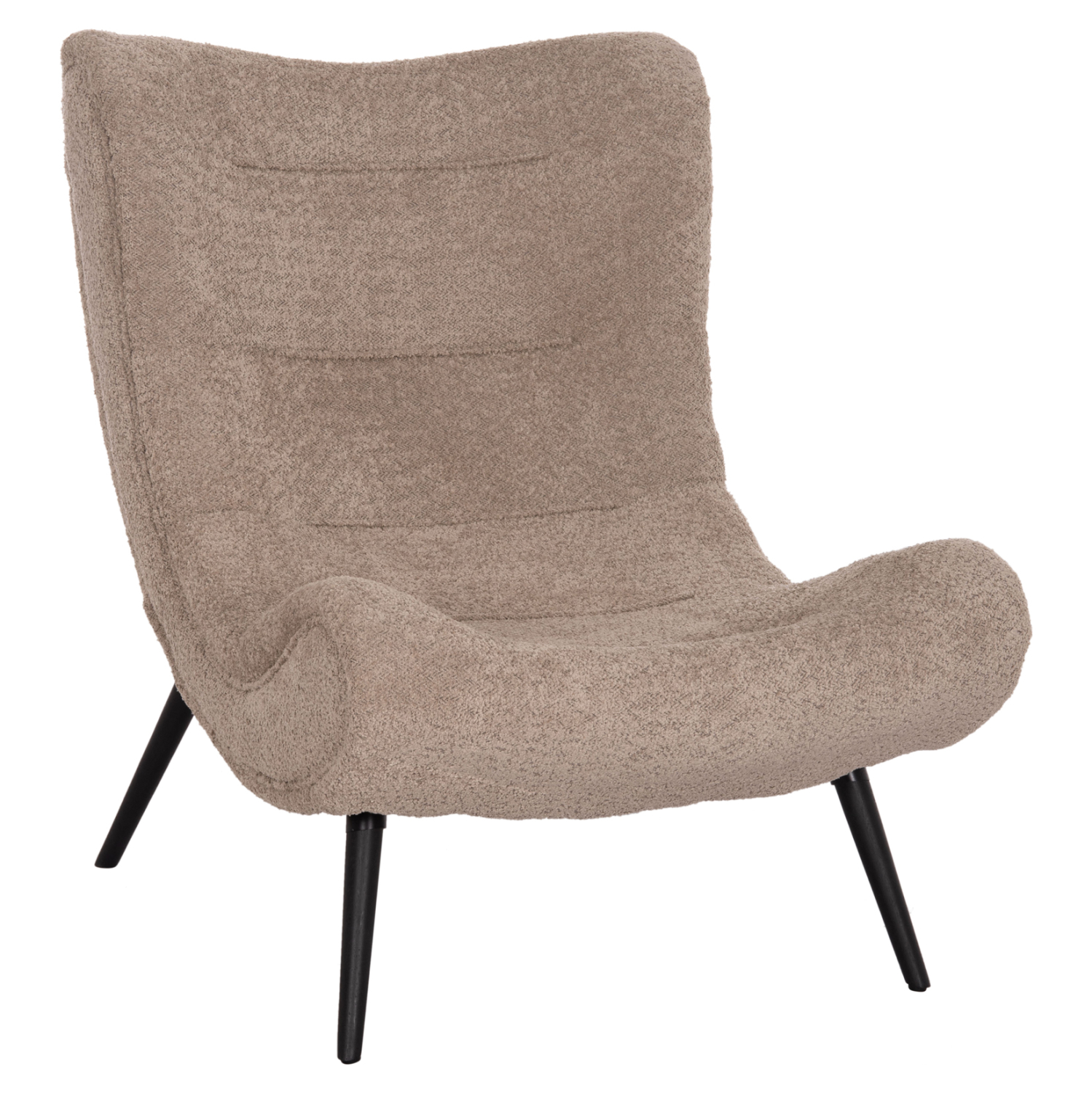 Αυτή είναι η πολυθρόνα/Lounge Chair BRYM σε ΣΚΟΥΡΟ ΜΠΕΖ χρώμα με μαύρα ξύλινα πόδια. Δεν διαθέτει μπράτσα και ο σχεδιασμός της με την μόνιμη ανάκλιση και την ψηλή πλάτη την καθιστά εξαιρετικά αναπαυτική. Το μπουκλέ ύφασμα της επένδυσης προσφέρει μια ζεστή αίσθηση που θα λατρέψετε!