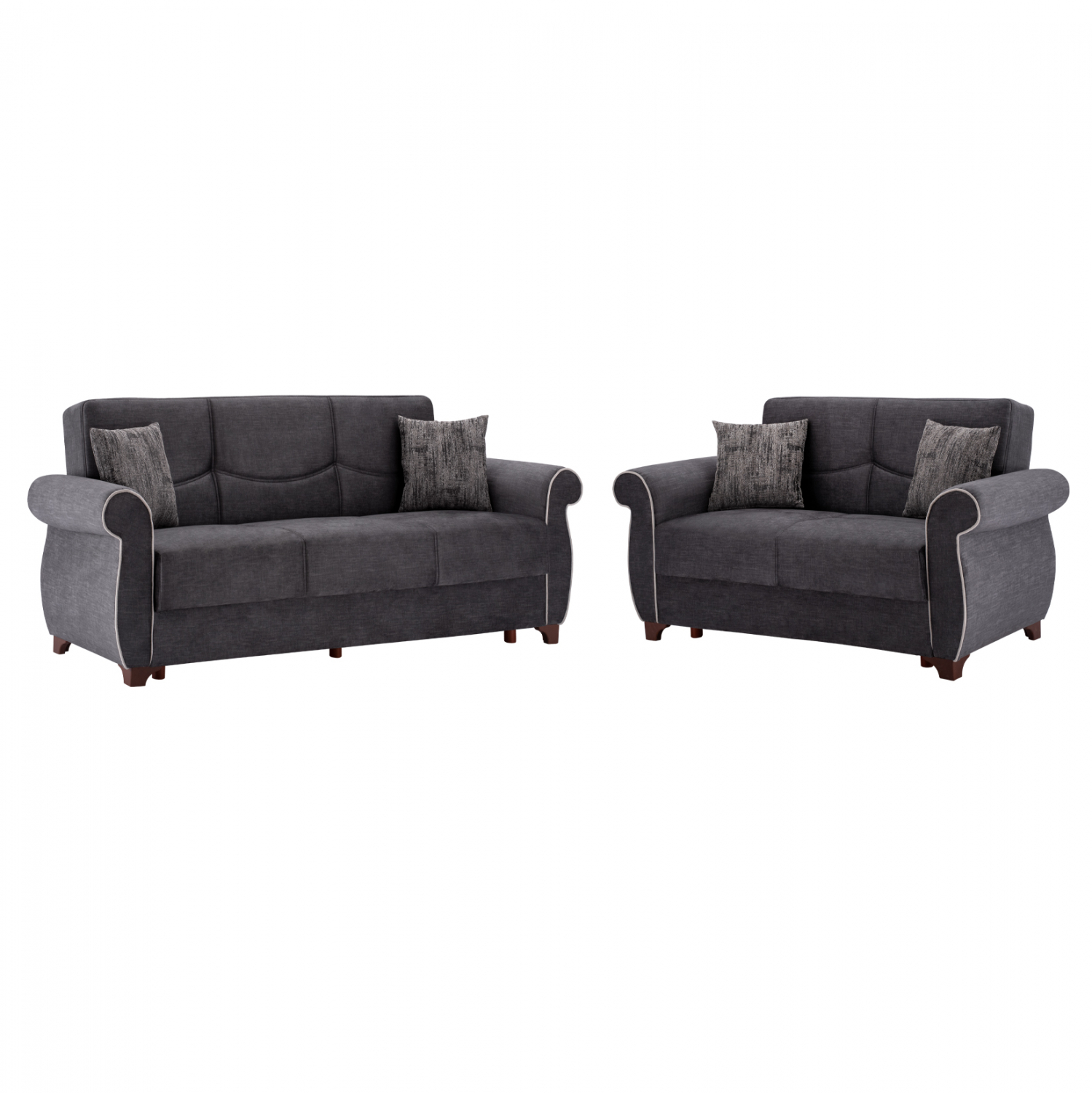 Σετ σαλόνι 2 τμχ MILAS, σε μοντέρνο σχεδιασμό και με ύφασμα υψηλής ποιότητας σε γκρι απόχρωση.