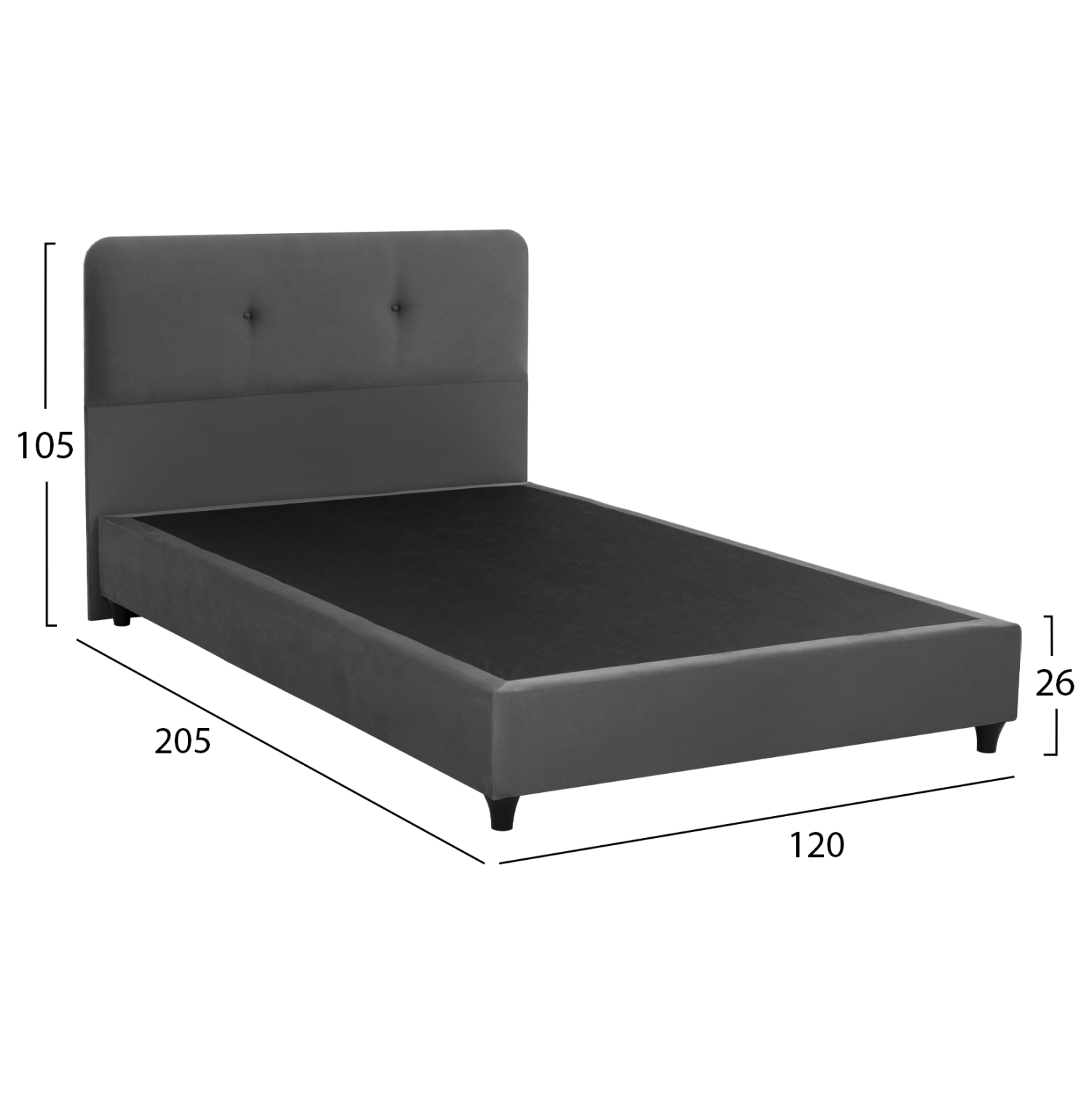 Κρεβάτι ημίδιπλο με επένδυση ΓΚΡΙ βελούδο—