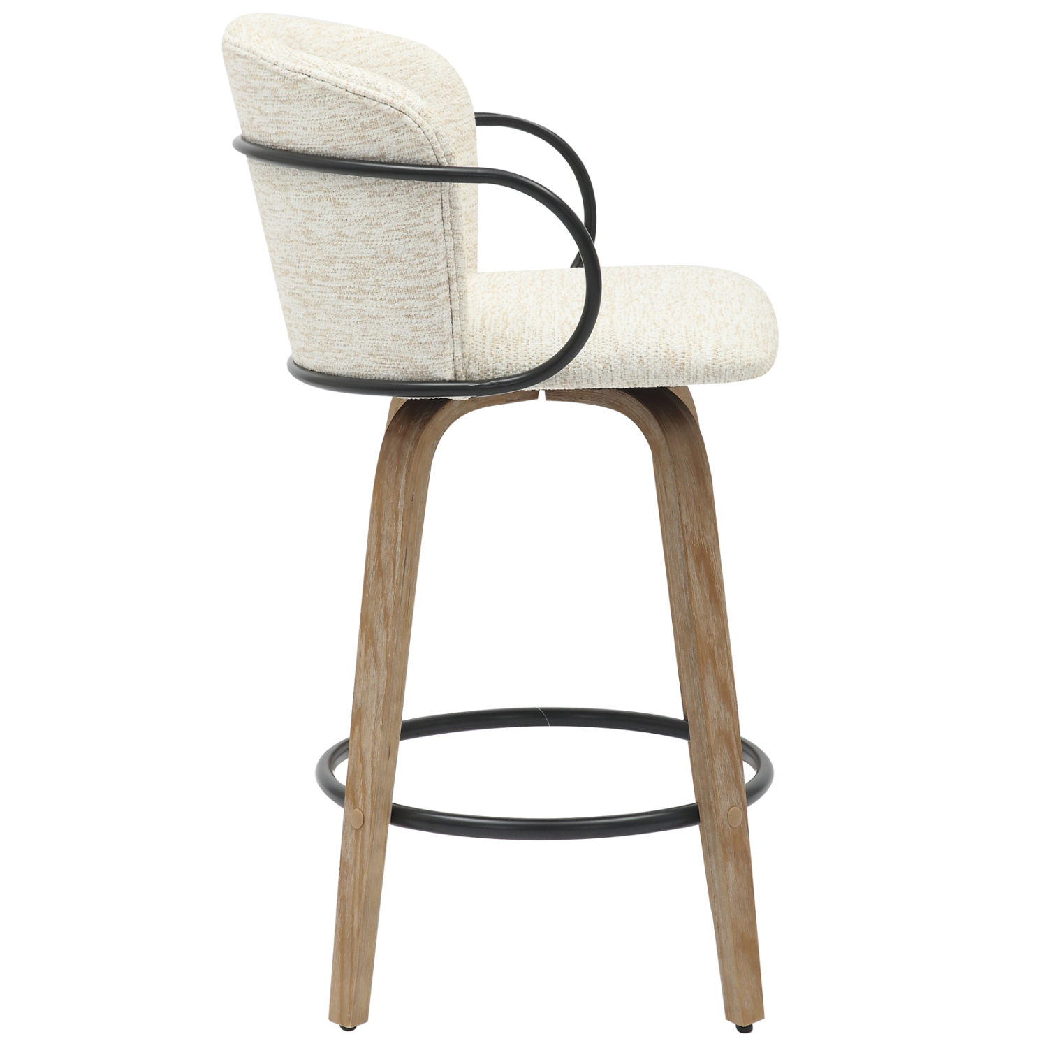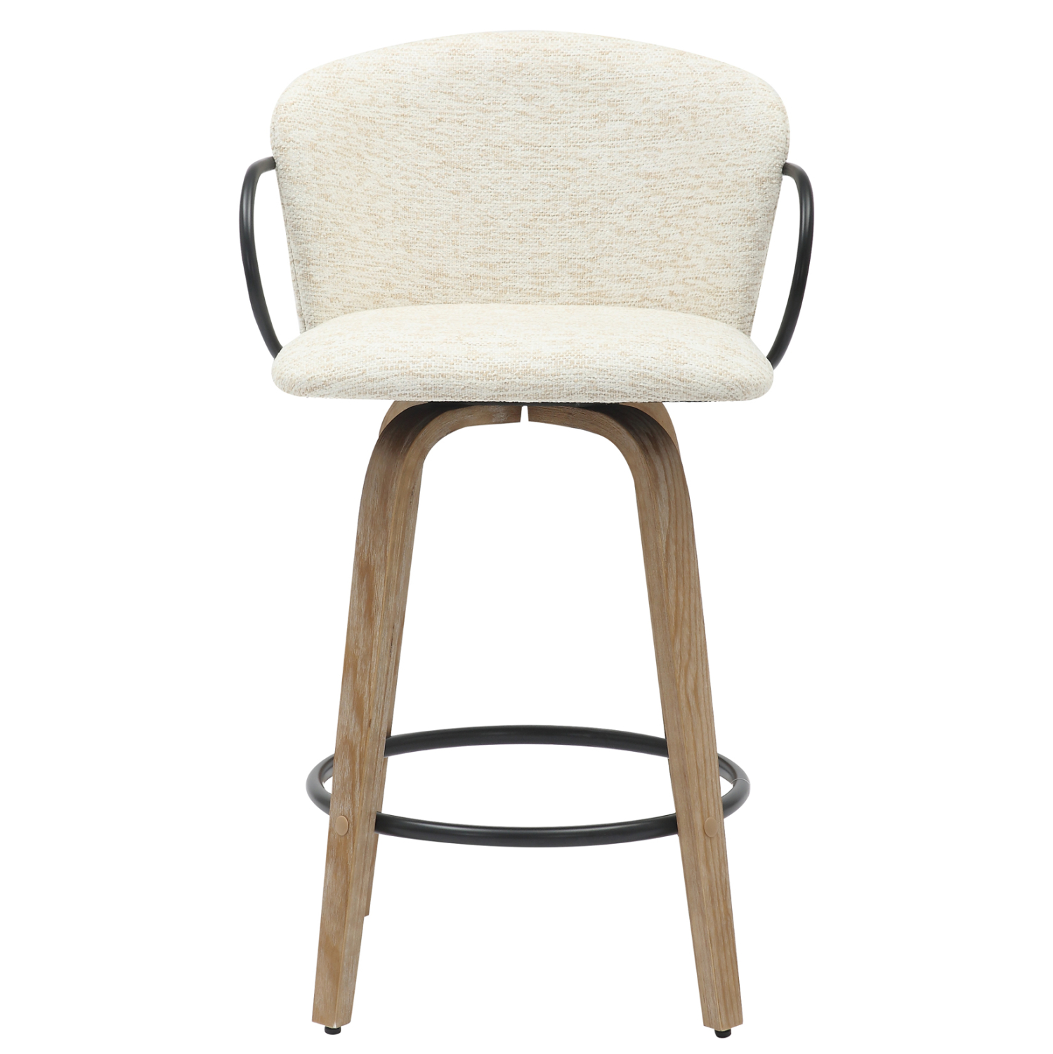 Το NEBOR είναι ένα σκαμπό μεσαίου ύψους με πλάτη και μπράτσα για μπαρ. Τα πόδια είναι κατασκευασμένα από ξύλο (κοντρα-πλακέ θαλάσσης) σε WHITEWASH απόχρωση ενώ το στρογγυλό υποπόδιο είναι μεταλλικό σε ΜΑΥΡΟ χρώμα. Το κάθισμα και η πλάτη είναι επενδυμένα με ΕΚΡΟΥ ύφασμα ενώ τα μπράτσα με το ιδιαίτερο σχήμα είναι μεταλλικά.