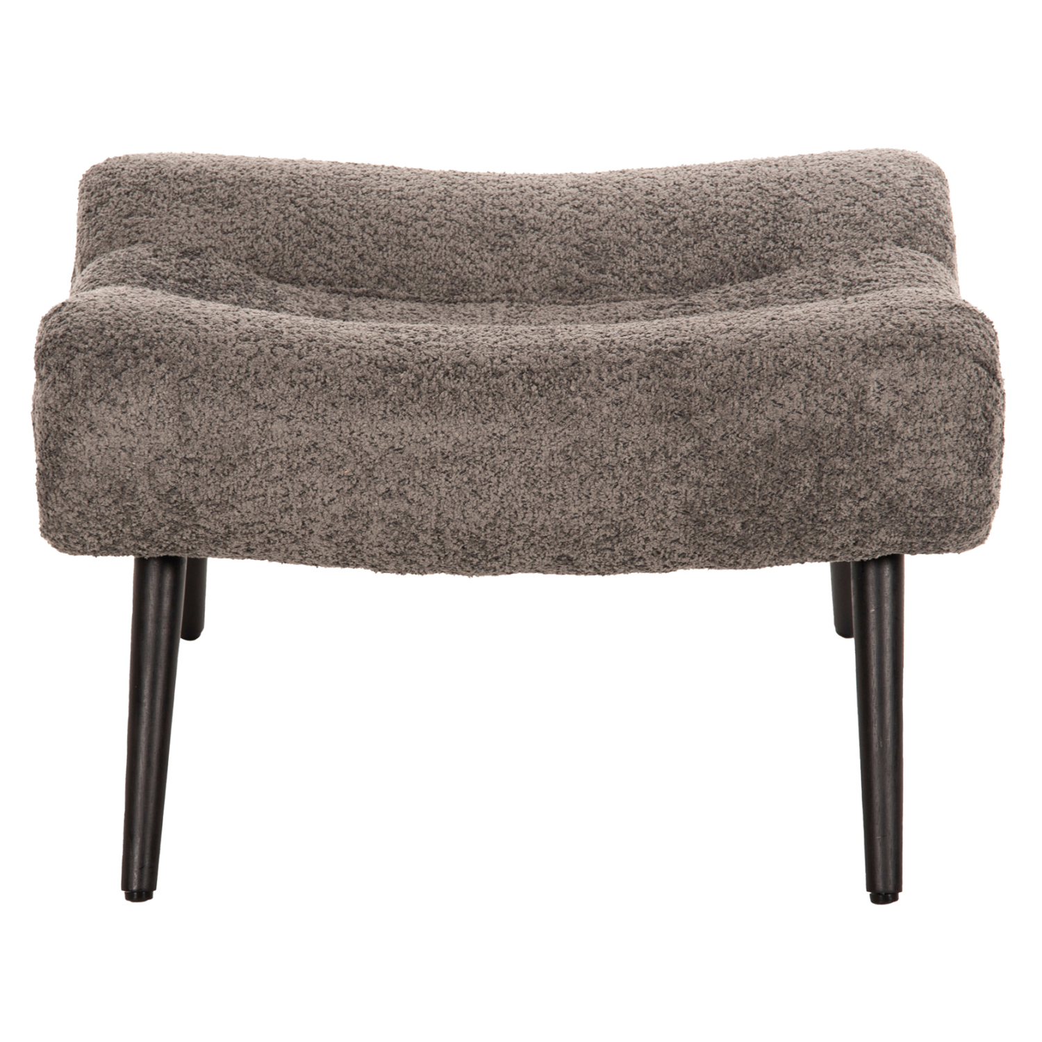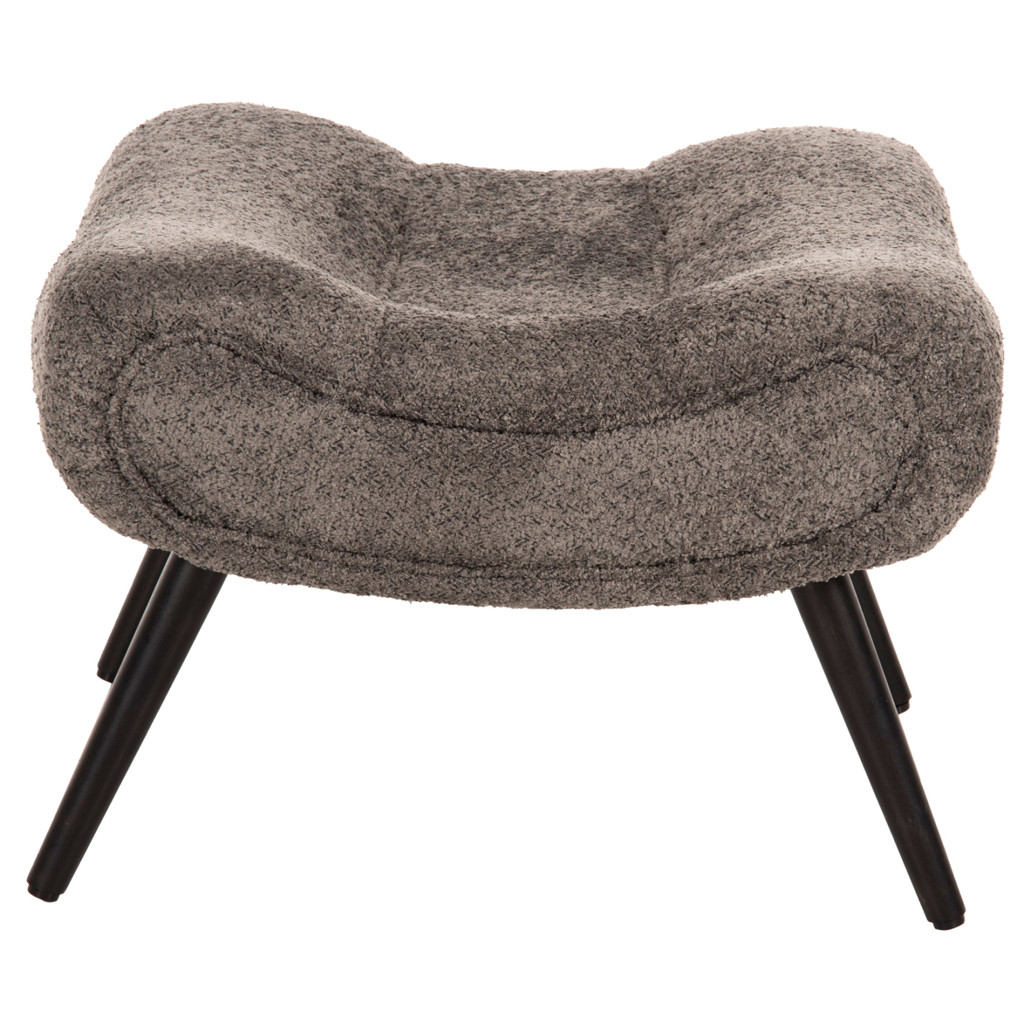 Σκαμπό/υποπόδιο KEMBA επενδυμένο με ΓΚΡΙ μπουκλέ ζεστό ύφασμα και μαύρα ξύλινα πόδια.