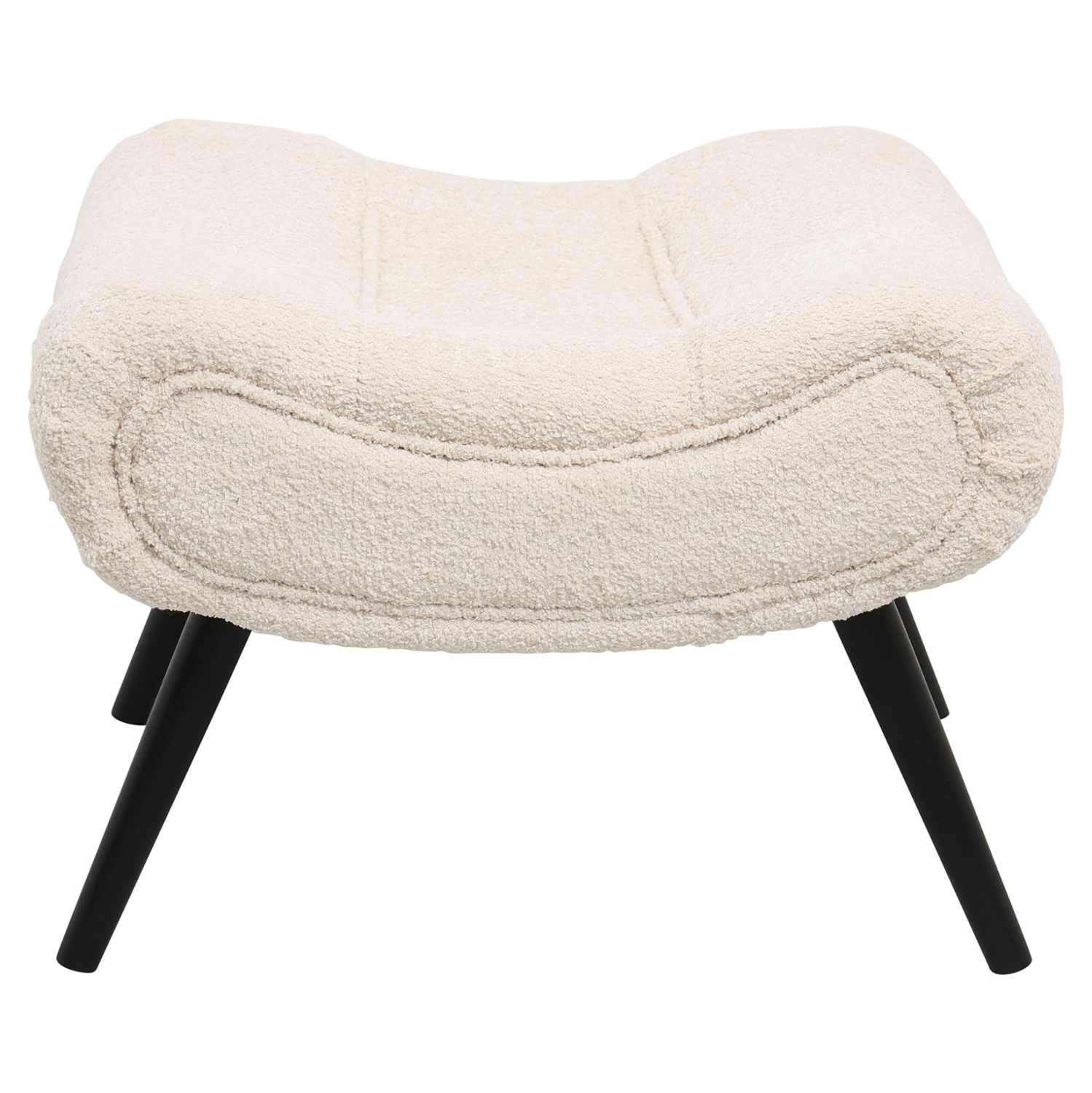 Σκαμπό υποπόδιο KEMBA επενδυμένο με ΕΚΡΟΥ μπουκλέ ζεστό ύφασμα και μαύρα ξύλινα πόδια.
