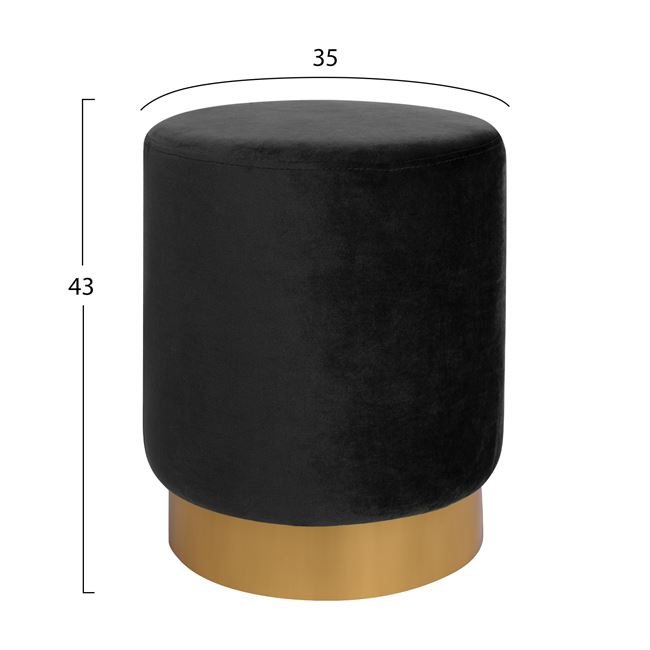 Σκαμπό LEVY HM8408.04 με μαύρο βελούδο και χρυσή βάση.