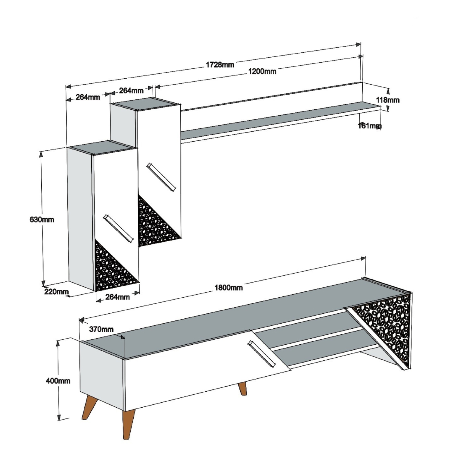 Το ΗΜ9514.02 είναι μια μοντέρνα και λειτουργική σύνθεση τηλεόρασης, που θα ομορφύνει το σαλόνι σας! Αποτελείται από το κυρίως έπιπλο δαπέδου το οποίο στην μία πλευρά του διαθέτει ανοιχτό χώρο τοποθέτησης αντικειμένων με ράφι και είναι διακοσμημένο με μηχανικά κατασκευασμένα σχέδια (CNC Relief), και στην άλλη διαθέτει ντουλάπι με μακρόστενο χερούλι. Η σύνθεση ολοκληρώνεται με 2 ντουλάπια τοίχου ίδιας αισθητικής και ένα μακρύ ράφι τοίχου. Πρόκειται για μια κομψή και ταυτόχρονα εντυπωσιακή πρόταση για το σαλόνι σας με κυρίαρχο χρώμα το ΚΑΡΥΔΙ!