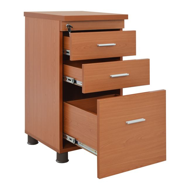 Συρταριέρα γραφείου για επαγγελματική χρήση, κατασκευασμένη από ανθεκτική μελαμίνη σε κερασί απόχρωση με κλειδαριά για τα 2 πρώτα συρτάρια,