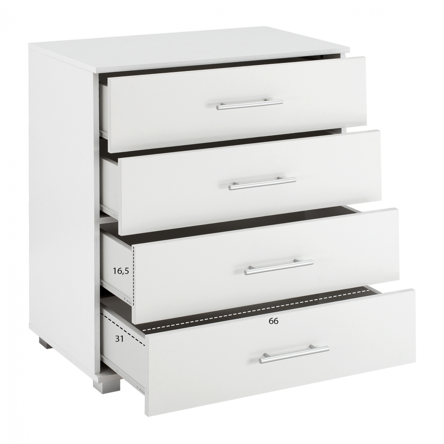 Μοντέρνα συρταριέρα κατασκευασμένη από μελαμίνη, σε λευκή απόχρωση.