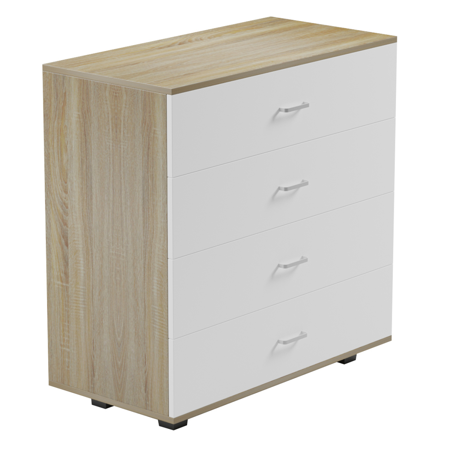 Η THORG είναι μια μεγάλη συρταριέρα με 4 φαρδιά συρτάρια που θα ικανοποιήσει όλες τις ανάγκες σας. Έχει όμορφη διχρωμία ΣΟΝΟΜΑ με ΛΕΥΚΑ συρτάρια, με χερούλια σε ασημί απόχρωση. Τα μαύρα ποδαράκια της συρταριέρας, είναι σταθερά και φαρδιά προσφέροντας στιβαρότητα στην κατασκευή και ταυτόχρονα δημιουργούν μια ευχάριστη διχρωμία με το κυρίως σώμα της συρταριέρας.