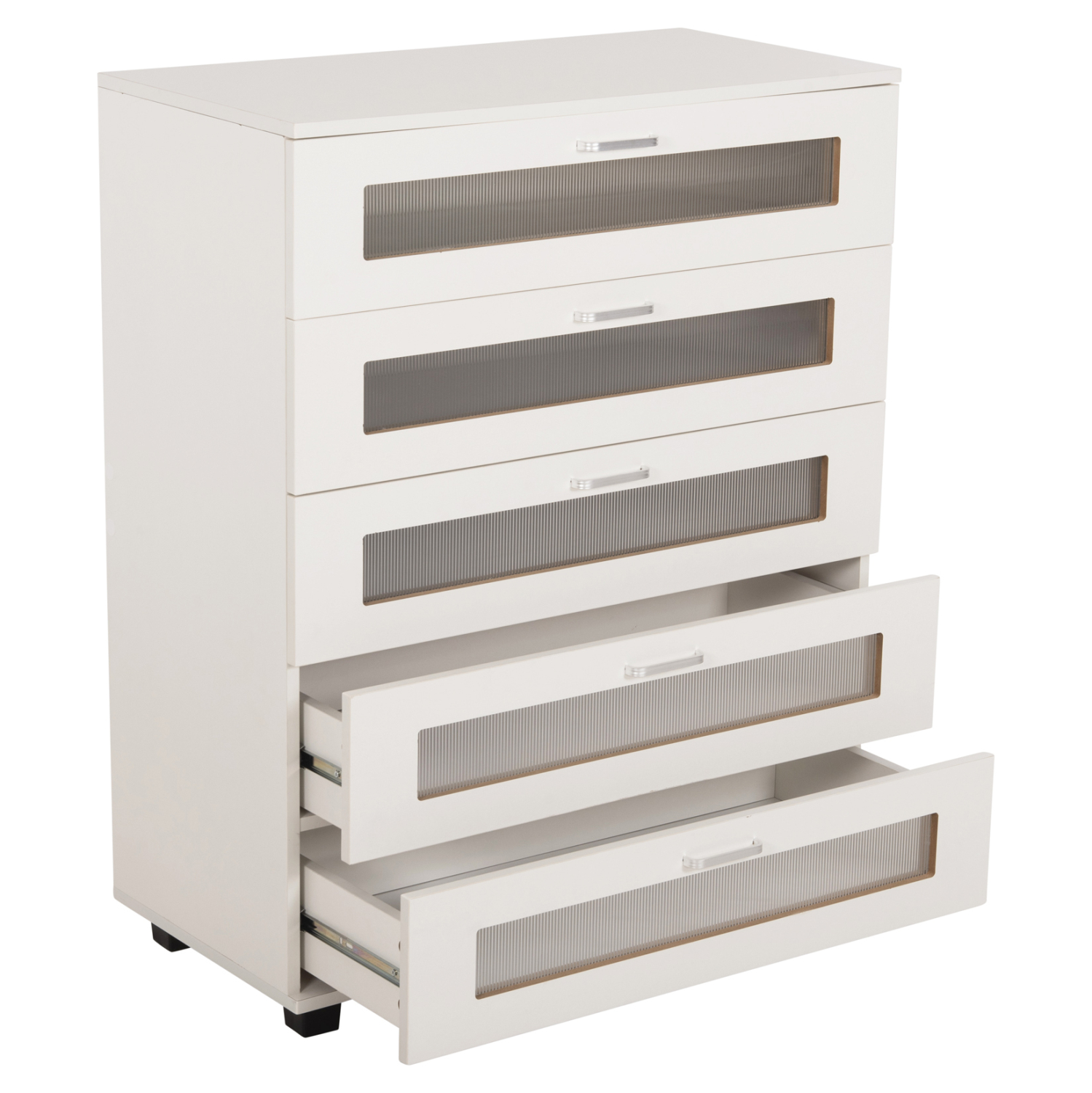 Η THORGAN είναι μια μεγάλη συρταριέρα με 5 φαρδιά συρτάρια που θα ικανοποιήσει όλες τις ανάγκες σας. Έχει ουδέτερο χρώμα ΛΕΥΚΟ με χερούλια σε ασημί απόχρωση. To χαρακτηριστικό που κάνει αυτή την συρταριέρα να ξεχωρίζει είναι ότι τα συρτάρια έχουν παραθυράκια από ημιδιαφανές πολυκαρβονικό γυαλί. Τα μαύρα ποδαράκια της συρταριέρας, είναι σταθερά και φαρδιά προσφέροντας στιβαρότητα στην κατασκευή και ταυτόχρονα δημιουργούν μια ευχάριστη διχρωμία με το κυρίως σώμα της συρταριέρας.