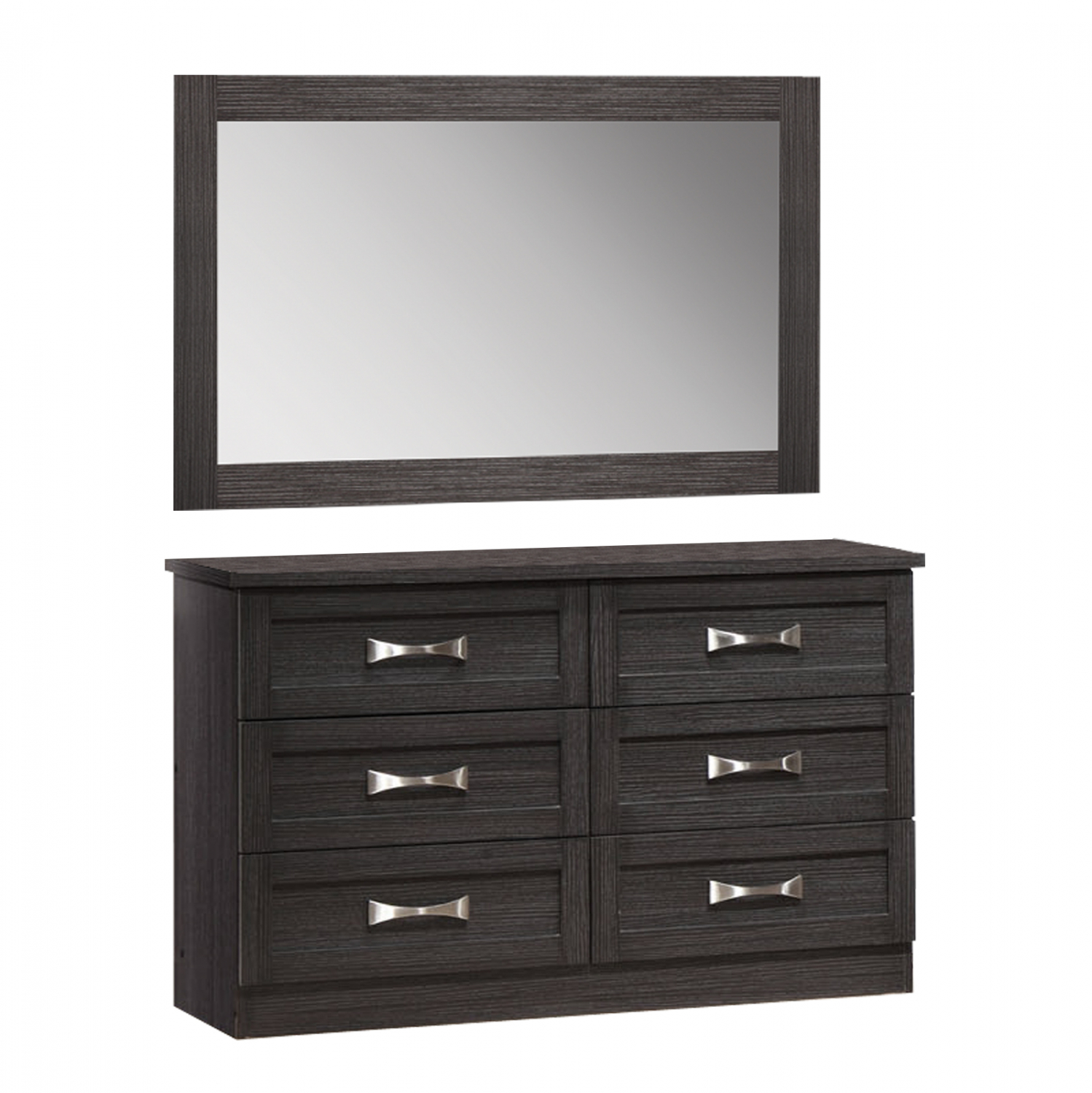 Τουαλέτα – συρταριέρα κρεβατοκάμαρας με καθρέπτη, από μελαμίνη άριστης ποιότητας. Η τουαλέτα διαθέτει 6 ευρύχωρα συρτάρια με μεταλλικό πόμολο. Χρώμα: Zebrano Διαστάσεις τουαλέτας: 120χ40χ76 εκ. Διαστάσεις καθρέπτη: 120χ72εκ.