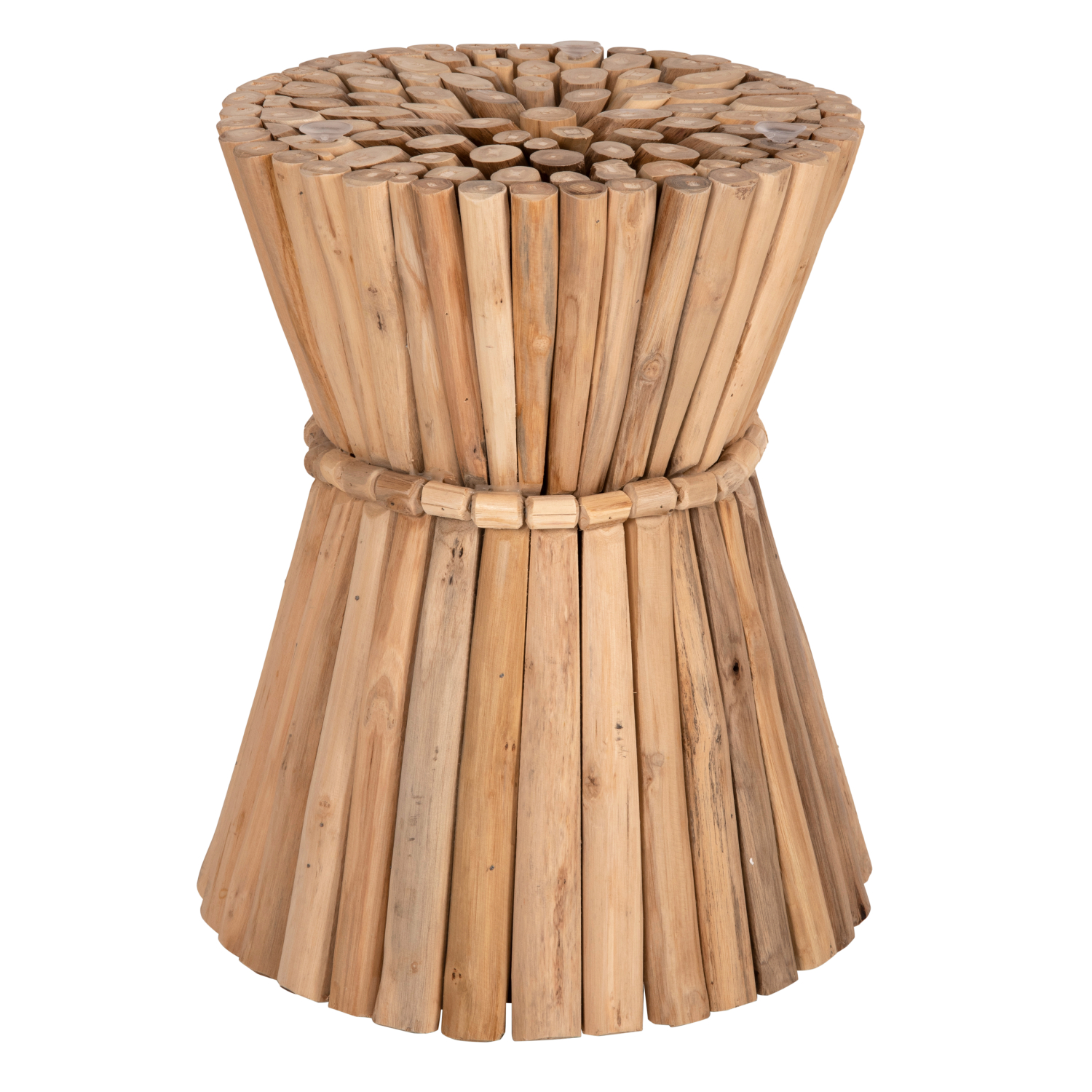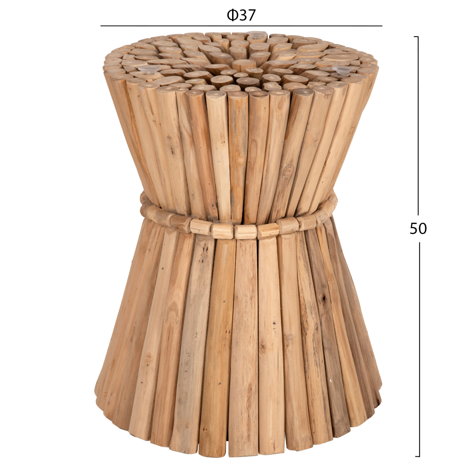 Σας παρουσιάζουμε το υπέροχο βοηθητικό τραπέζι σαλονιού COOTER. Πρόκειται για ένα στρογγυλό τραπέζι από φυσικά κομμάτια (κλαδιά) ποιοτικού ξύλου ΤΕΑΚ χωρίς πόδια. Οπτικά, έχει την μορφή μπουκέτου από ξύλα δεμένα στην μέση με ξύλινη επίσης αλυσίδα. Δεν διαθέτει γυάλινη επιφάνεια.