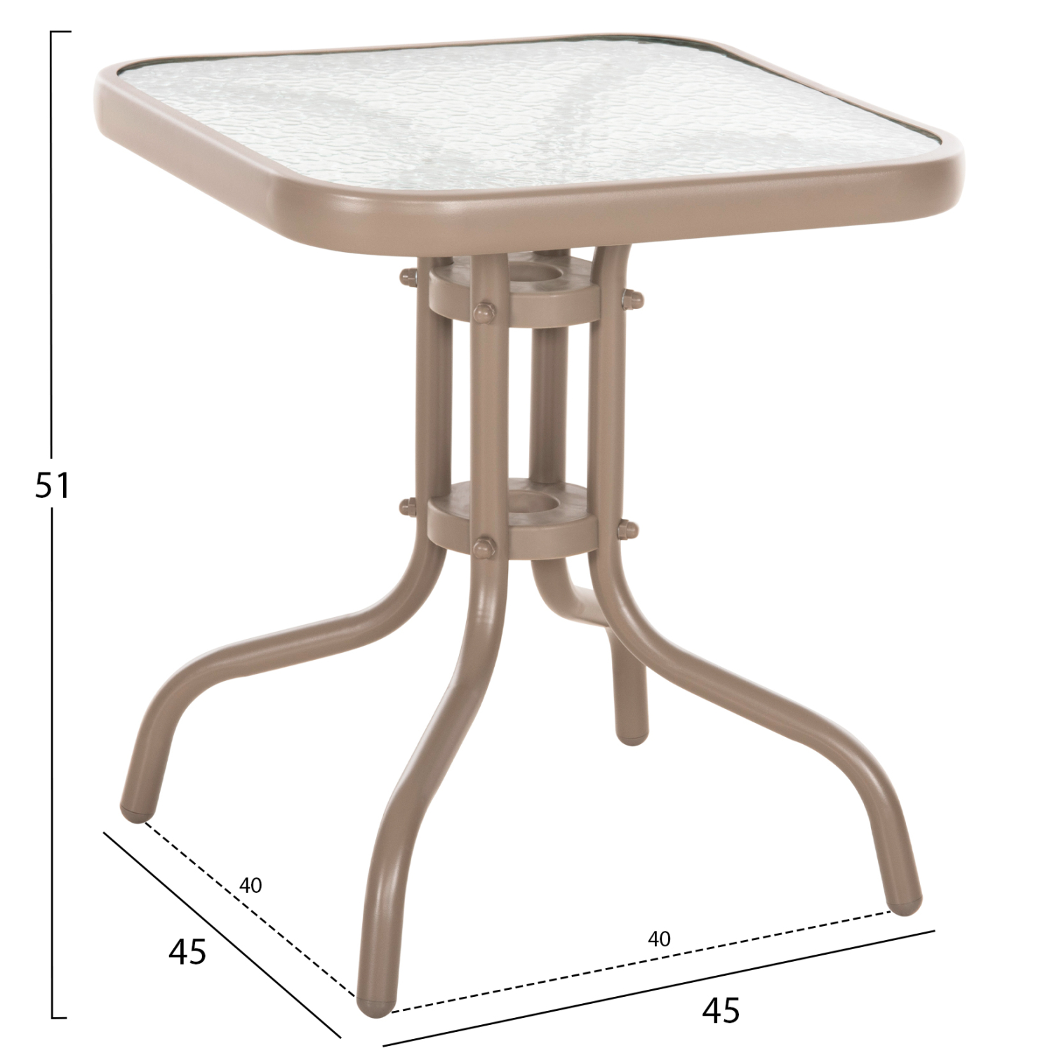 Το βοηθητικό τραπεζάκι εξωτερικού χώρου FIGO σε ΣΑΜΠΑΝΙ χρώμα είναι κοντό, τετράγωνο με στρογγυλεμένες γωνίες, και καμπυλωτή διάταξη στα πόδια. Πρόκειται για πολύ δημοφιλές μοντέλο που δεν λείπει σχεδόν από κανέναν μπαλκόνι ή κήπο. Το τραπεζάκι ενδείκνυται εκτός των άλλων και για περιορισμένους χώρους, όπως μπαλκόνια ή μικρές αυλές.