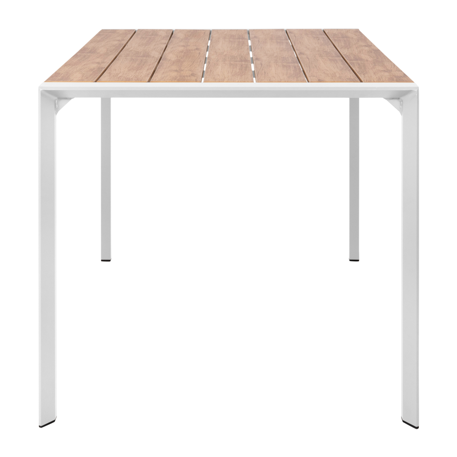Το GOYA είναι ένα ορθογώνιο τραπέζι για εξωτερικούς χώρους με σκελετό αλουμινίου σε ΛΕΥΚΟ χρώμα. Η επιφάνεια είναι από πλάκες polywood σε ΦΥΣΙΚΟ χρώμα ξύλου. Πρόκειται για ένα απλό τραπέζι σε κανονική διάσταση, που μπορεί να εξυπηρετήσει 6 τουλάχιστον άτομα.