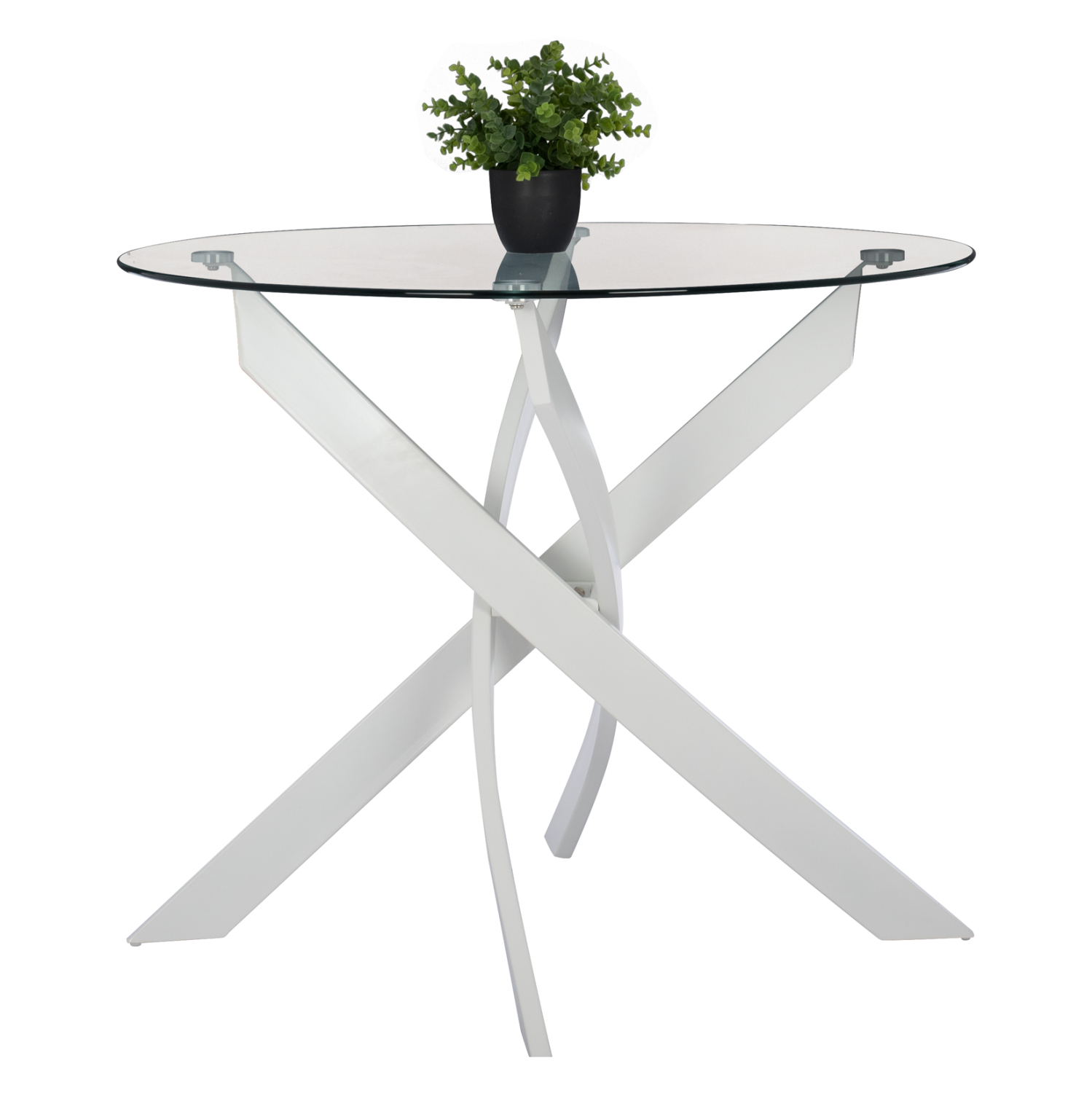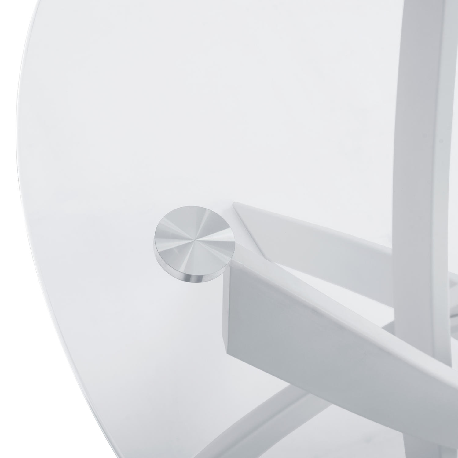 ΗΜ8499.03 ΤΡΑΠΕΖΙ ΣΤΡΟΓΓΥΛΟ γυάλινο—–Ανακαλύψτε την καινούρια προσθήκη στην γκάμα των προϊόντων μας. Το στρογγυλό τραπέζι με επιφάνεια από διάφανο γυαλί ασφαλείας και μεταλλικά πόδια με μοντέρνα γεωμετρία σε ΛΕΥΚΟ ματ χρώμα. Τα τραπέζια ροτόντες είναι ιδιαιτέρως πρακτικά και όμορφα γιατί δεν έχουν κορυφές και «αρχηγούς», ούτε και γωνίες ή πόδια στις γωνίες που, πολλές φορές, δημιουργούν άβολες καταστάσεις. Με το ΗΜ8499.03 το μοντέρνο design συναντά την καθαρότητα του γυαλιού και δίνει μια καλλιτεχνική αίσθηση στον χώρο σας.
