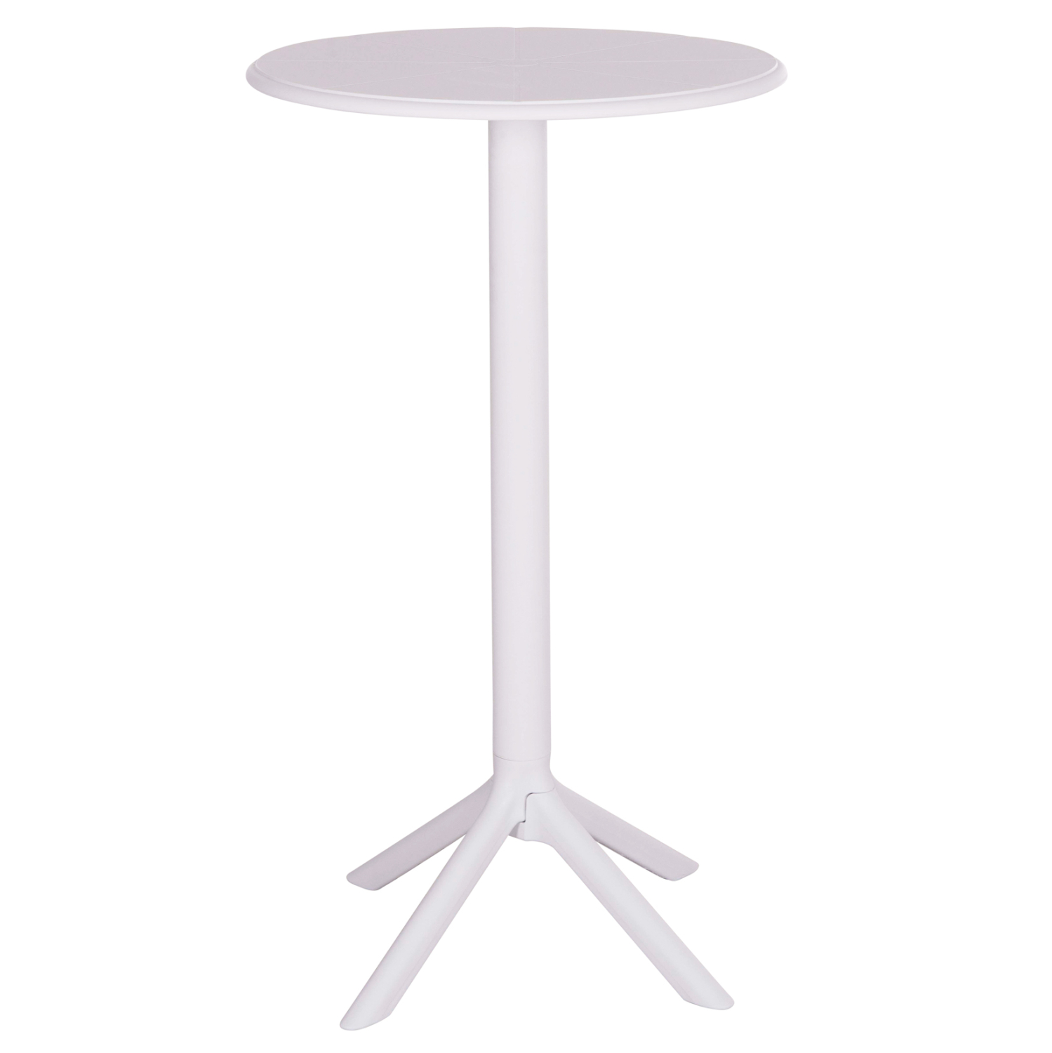 Το ψηλό τραπέζι για μπαρ πολυπροπυλενίου TERRIN σε ΛΕΥΚΟ χρώμα είναι η ιδανική πρόταση για χρήση σε εξωτερικούς χώρους, είτε επαγγελματικούς (κυρίως), είτε για το σπίτι. Το τραπέζι είναι στρογγυλό, ενώ η στήριξη γίνεται με μια κολώνα στο κέντρο που καταλήγει σε 4 πόδια («νύχια»).