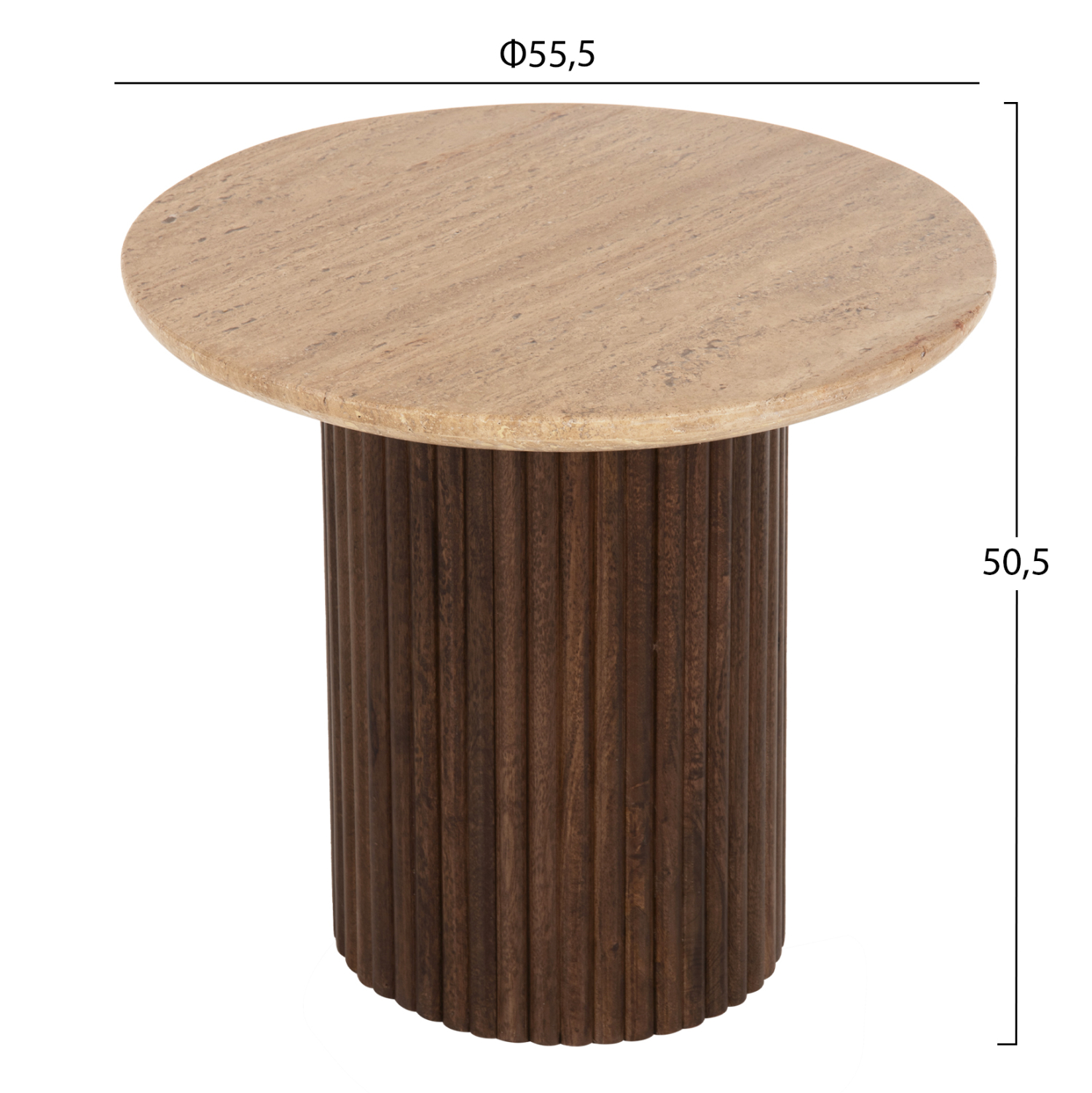 Το GLADYS είναι ένα στρογγυλό τραπέζι για το σαλόνι σε ΚΑΦΕ χρώμα με επιφάνεια από τραβερτίνα στο ΛΕΥΚΟ της χρώμα. Πρόκειται για ένα πολυτελέστατο όσο και πρακτικό έπιπλο για το σαλόνι σας που δεν θα περάσει απαρατήρητο!