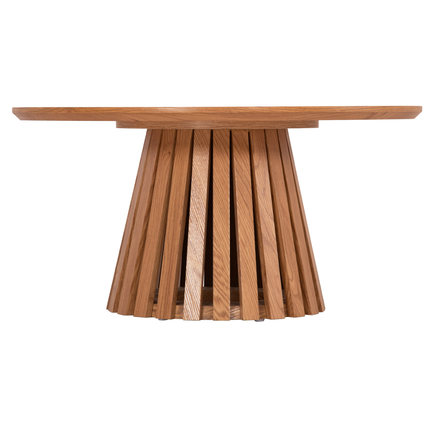 Το τραπέζι σαλονιού TALBERT είναι στρογγυλό και χαμηλό σχετικά τραπέζι σε ΑΝΟΙΧΤΟ χρώμα ΦΥΣΙΚΟΥ ξύλου. Ολόκληρο το τραπέζι είναι κατασκευασμένο από MDF και ξεχωρίζει ιδιαίτερα χάρη στην όμορφη κωνική βάση του.