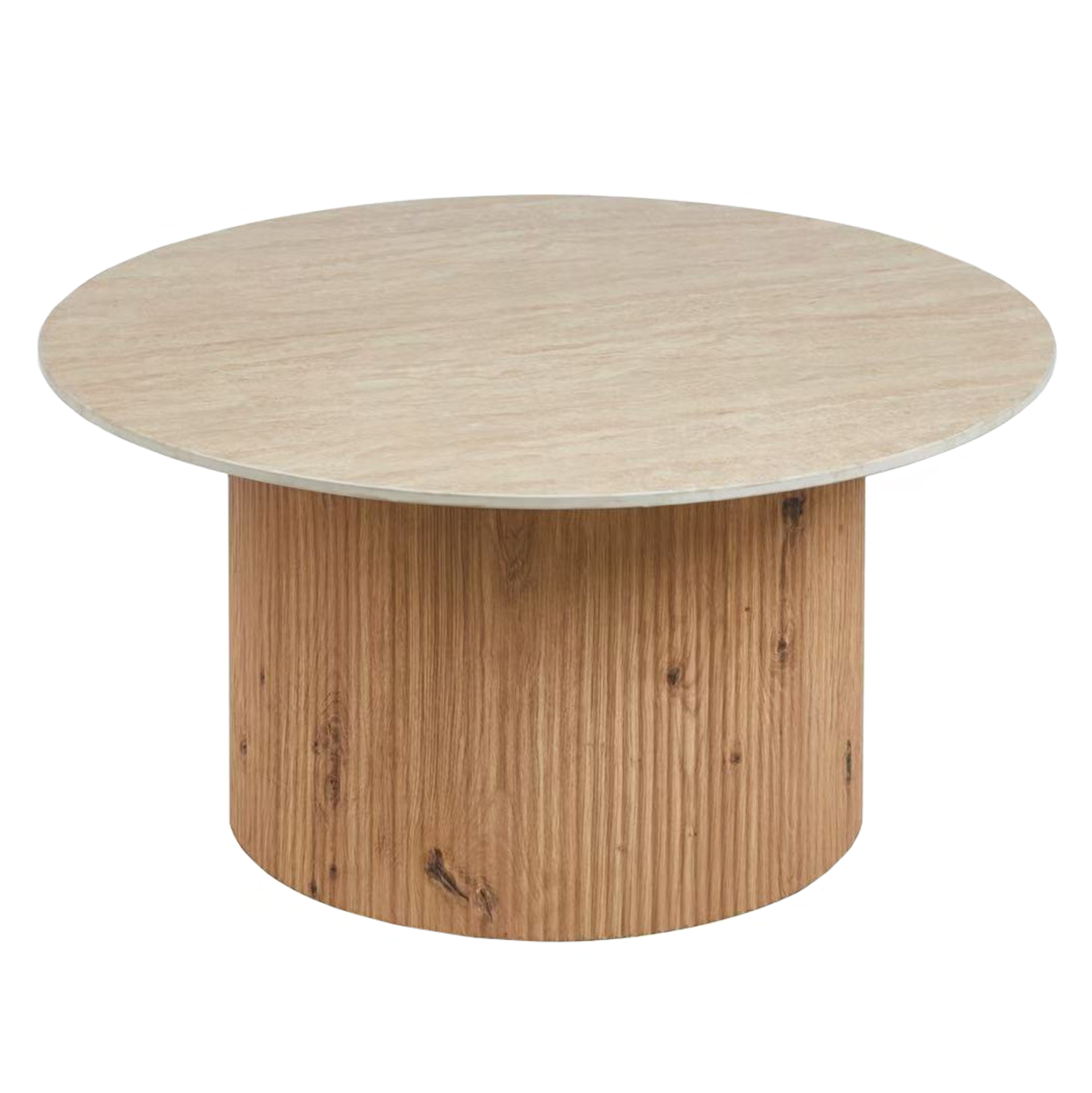 Το τραπέζι σαλονιού TWIL είναι στρογγυλό και αποτελεί νέα προσθήκη στην γκάμα μας. Η επίπεδη επιφάνειά του είναι κεραμική σε χρωματισμό TRAVERTINE STONE, ενώ η βάση του είναι κυλινδρική κατασκευασμένη εξολοκλήρου από MDF σε χρώμα ΦΥΣΙΚΟΥ ΞΥΛΟΥ, με όμορφες πτυχώσεις.