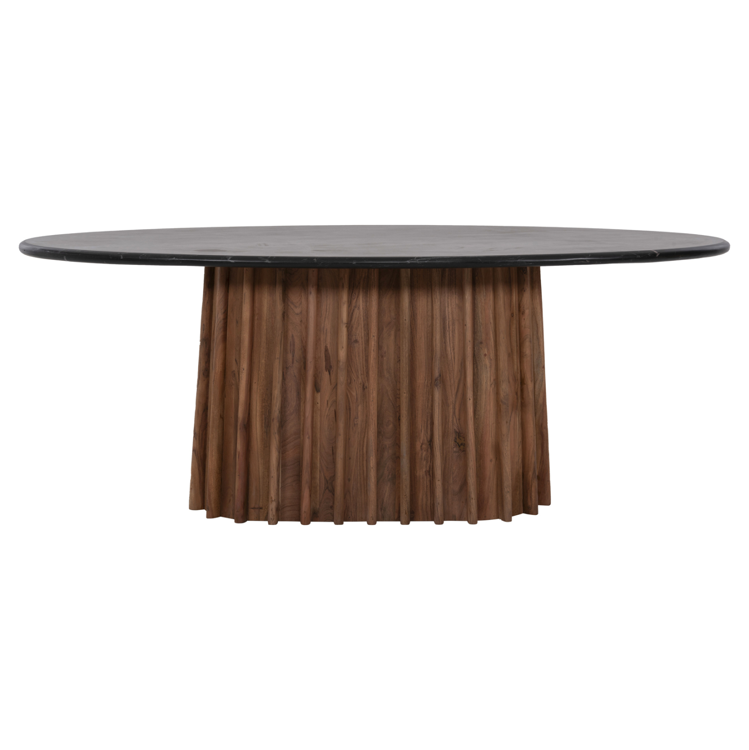 Το DRAXX είναι ένα πανέμορφο οβάλ τραπέζι τραπεζαρίας σε μεγάλη διάσταση με επιφάνεια από ΜΑΥΡΟ ΜΑΡΜΑΡΟ. Αυτή η επιφάνεια στηρίζεται σε μια κεντρική κολώνα με κωνικό οβάλ σχήμα από ποιοτικό μασίφ ξύλο αριστοτεχνικά λαξευμένο. Αυτό το εντυπωσιακό τραπέζι θα αναβαθμίσει αισθητικά την τραπεζαρία σας ενώ μπορεί να ταιριάξει με πολλά διαφορετικά στυλ και χρώματα στον τριγύρω χώρο, όπως και με διαφορετικά στυλ καρέκλας.
