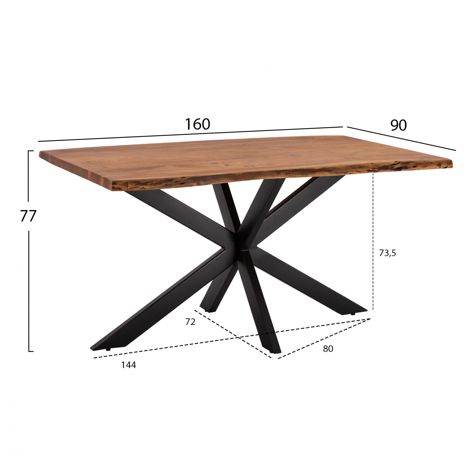 ΗΜ8481.11 ΤΡΑΠΕΖΙ ΑΚΑΚΙΑΣ—–Ανακαλύψτε το μοναδικό χειροποίητο τραπέζι HM8481.11 με επιφάνεια από φυσικό μασίφ ξύλο ΑΚΑΚΙΑΣ σε ΦΥΣΙΚΟ χρώμα. To σχήμα είναι ορθογώνιο και στηρίζεται σε μαύρα μεταλλικά διπλοχιαστί πόδια. Το μοντέρνο design συναντά την φύση και δίνει μια διαχρονική και ζεστή αίσθηση στον χώρο σας.