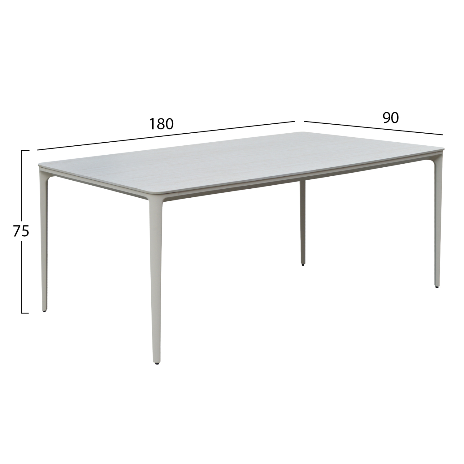 Αναβαθμίστε τον εξωτερικό σας χώρο με το κομψό ορθογώνιο τραπέζι τραπεζαρίας STAD, ιδανικό για 6-8 άτομα. Ο ανθεκτικός σκελετός και τα πόδια από αλουμίνιο σε ΜΠΕΖ προσφέρουν σταθερότητα και μοντέρνα αισθητική. Η επιφάνεια από sintered stone σε ΛΕΥΚΟ χρώμα εξασφαλίζει υψηλή αντοχή σε καιρικές συνθήκες, γρατζουνιές και θερμότητα. Ιδανική επιλογή για κήπο, βεράντα ή patio με minimal design. Επιλέξτε ένα τραπέζι εξωτερικού χώρου που συνδυάζει στυλ, ποιότητα και πρακτικότητα.