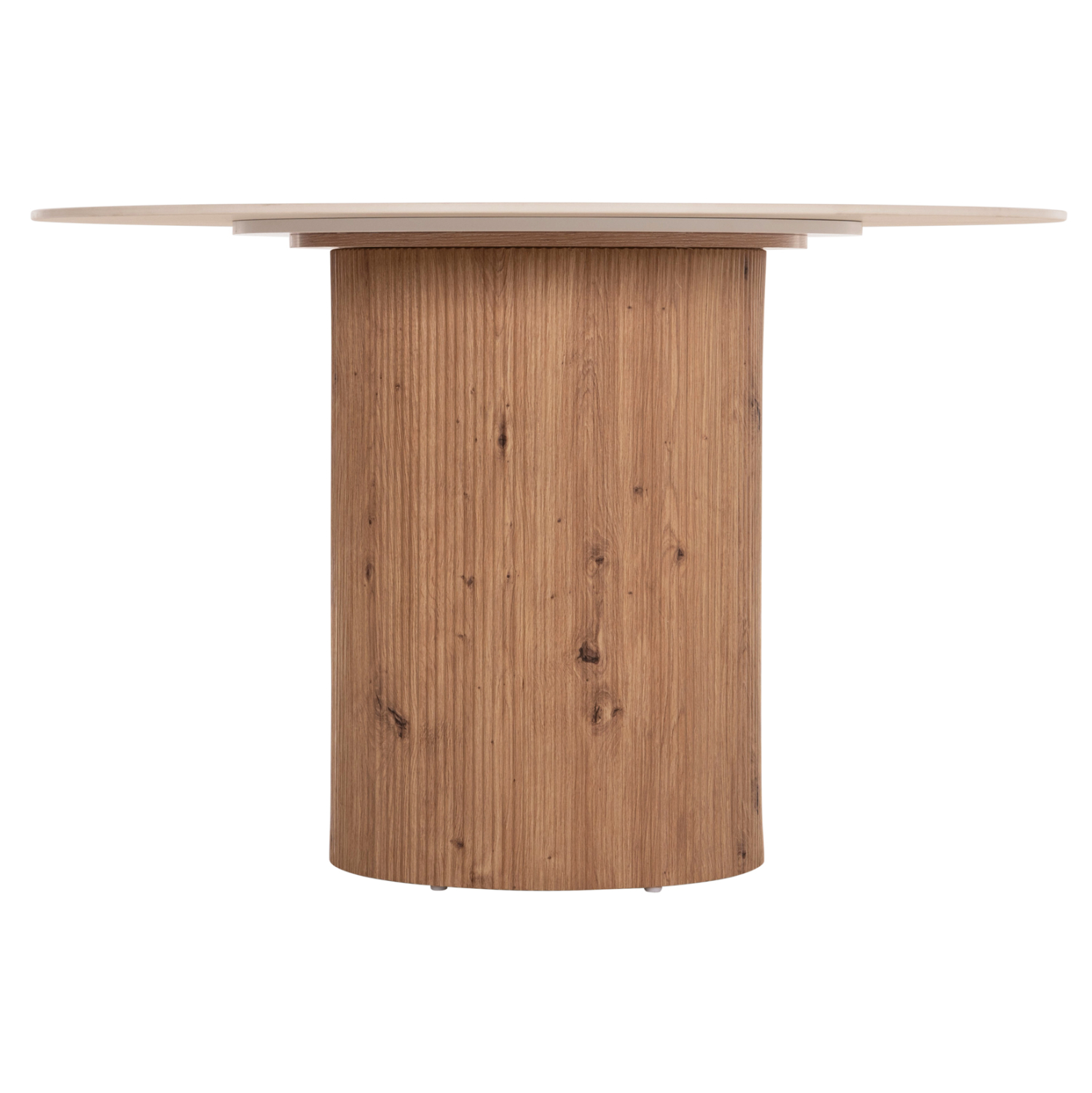 Το τραπέζι τραπεζαρίας TWIL είναι στρογγυλό και αποτελεί νέα προσθήκη στην γκάμα μας. Η επίπεδη επιφάνειά του είναι κεραμική σε χρωματισμό TRAVERTINE STONE, ενώ η βάση του είναι κυλινδρική κατασκευασμένη εξολοκλήρου από MDF σε χρώμα ΦΥΣΙΚΟΥ ΞΥΛΟΥ, με όμορφες πτυχώσεις.