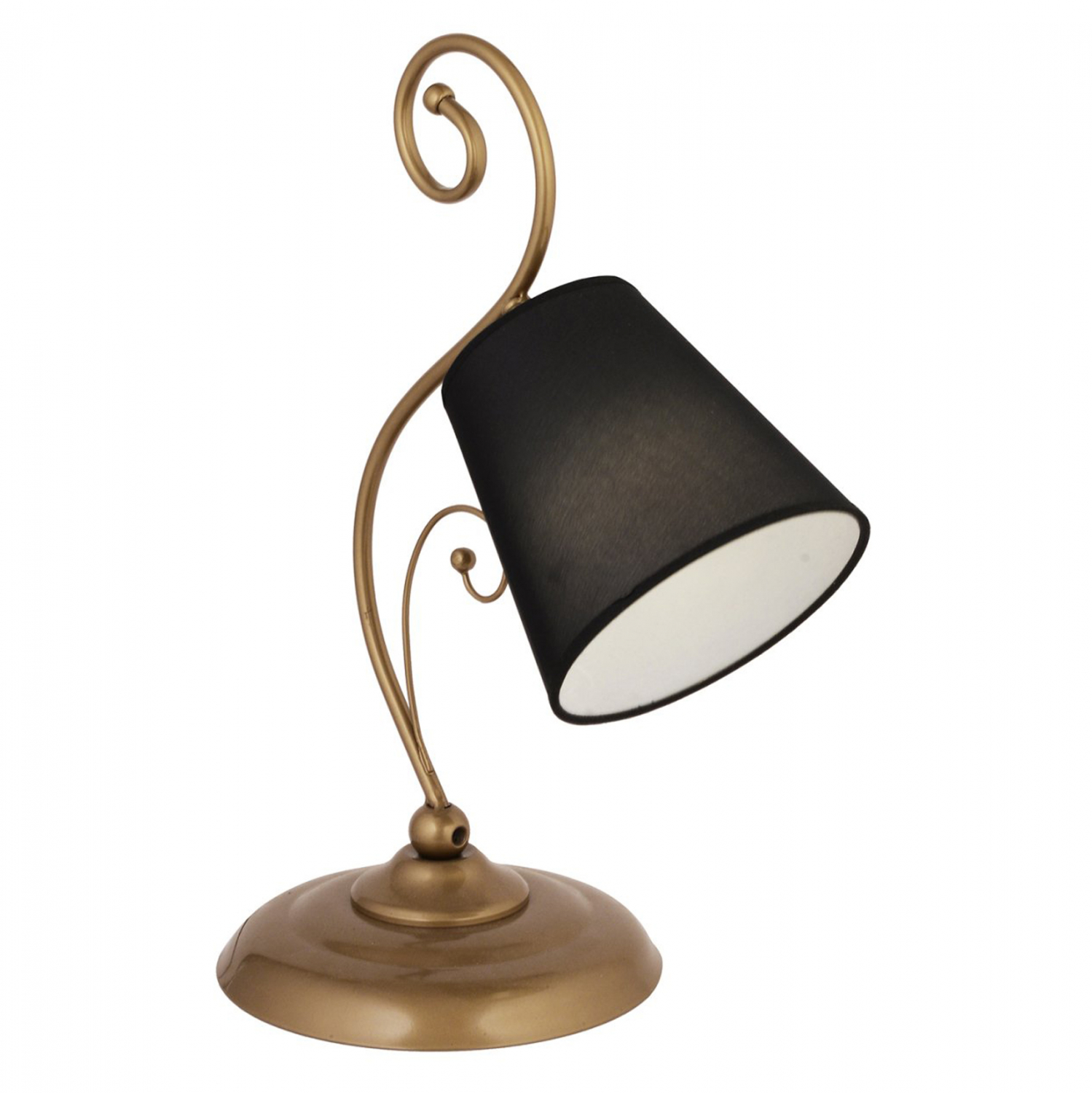 Επιτραπέζιο φωτιστικό, χρυσή απόχρωση με μαύρο καπέλο.