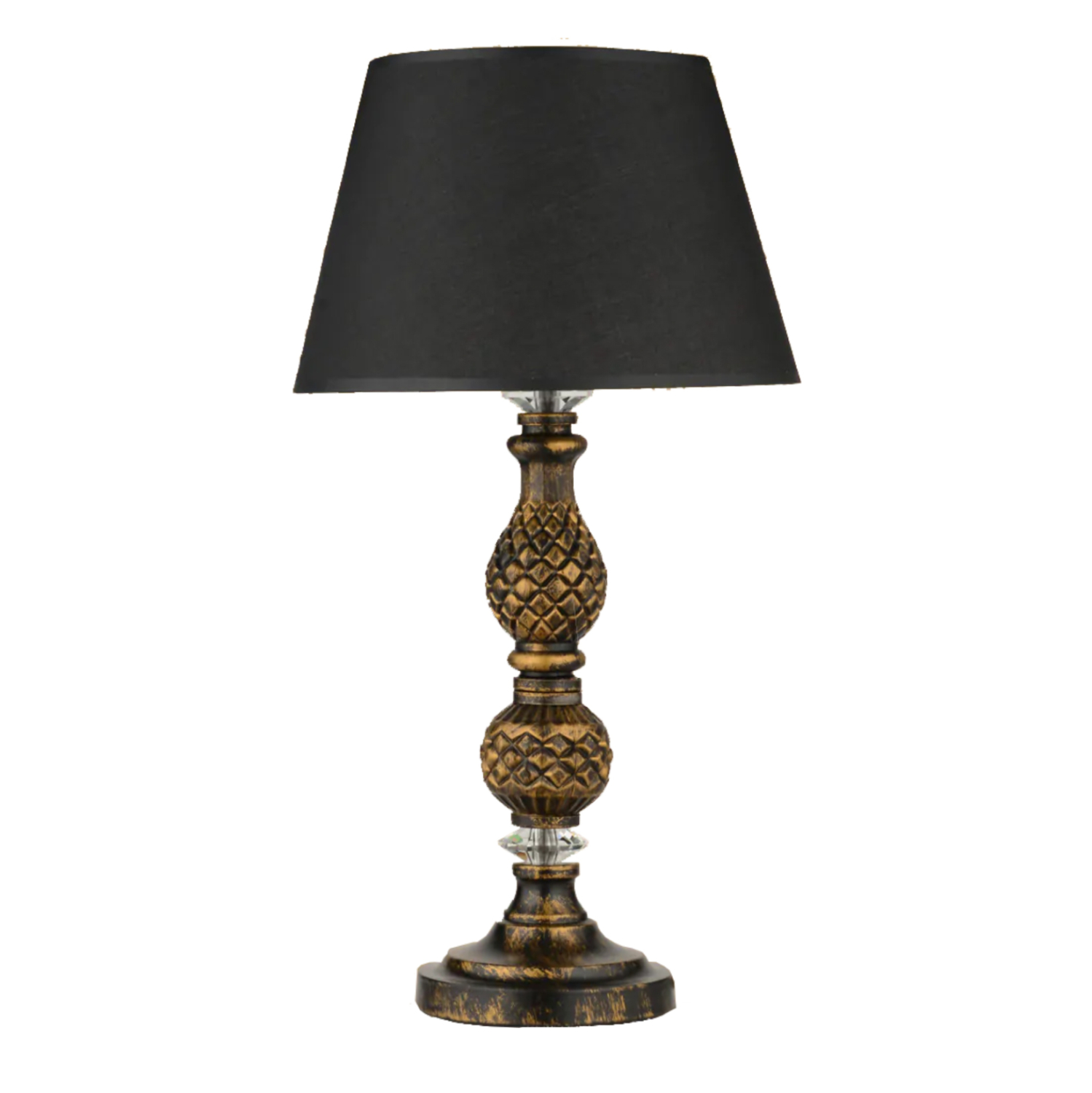 Το ΗΜ7665.02 είναι ένα ιδιαίτερο επιτραπέζιο διακοσμητικό φωτιστικό. Το «καπέλο» του φωτιστικού έχει σχήμα ανοιχτής καμπάνας (τραπεζοειδές) σε ΜΑΥΡΟ χρώμα, ενώ η κολώνα στήριξης είναι το σημείο αναφοράς αυτού του φωτιστικού. Είναι σκαλιστή σε χρώμα χρυσής πατίνας με όμορφο ανάγλυφο σχέδιο και καταλήγει σε μια κυκλική βάση σχετικά μικρής διάστασης. Ένα ξεχωριστό και κομψό επιτραπέζιο φωτιστικό που διαχέει γλυκά το φως και δημιουργεί την ατμόσφαιρα που πάντα φανταζόσασταν για τον χώρο σας, έτσι ώστε να φτιάξετε την δική σας γωνιά χαλάρωσης ή ακόμα και διακόσμησης. Διότι το φως, σημαίνει κάτι περισσότερο από ένα φωτιστικό. Σημαίνει διακόσμηση, ατμόσφαιρα, τέχνη, μεράκι, και φυσικά επιστήμη.