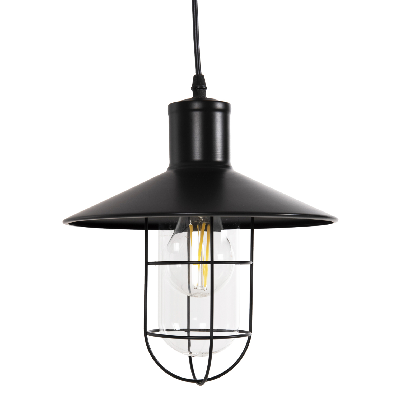 Το HΜ4119 είναι ένα νέο μονόφωτο φωτιστικό που θα ανανεώσει τη διακόσμησή σου. Το κρεμαστό αυτό φωτιστικό έχει μεταλλικό ρηχό καπέλο σε ΜΑΥΡΟ χρώμα και μεταλλικό μακρόστενο κλωβό με γυαλί στο εσωτερικό για τον λαμπτήρα. Ένα φωτιστικό που θα θυμίζει φωτιστικά βιομηχανικού τύπου για μια διαφορετική «νότα» στον χώρο σας.