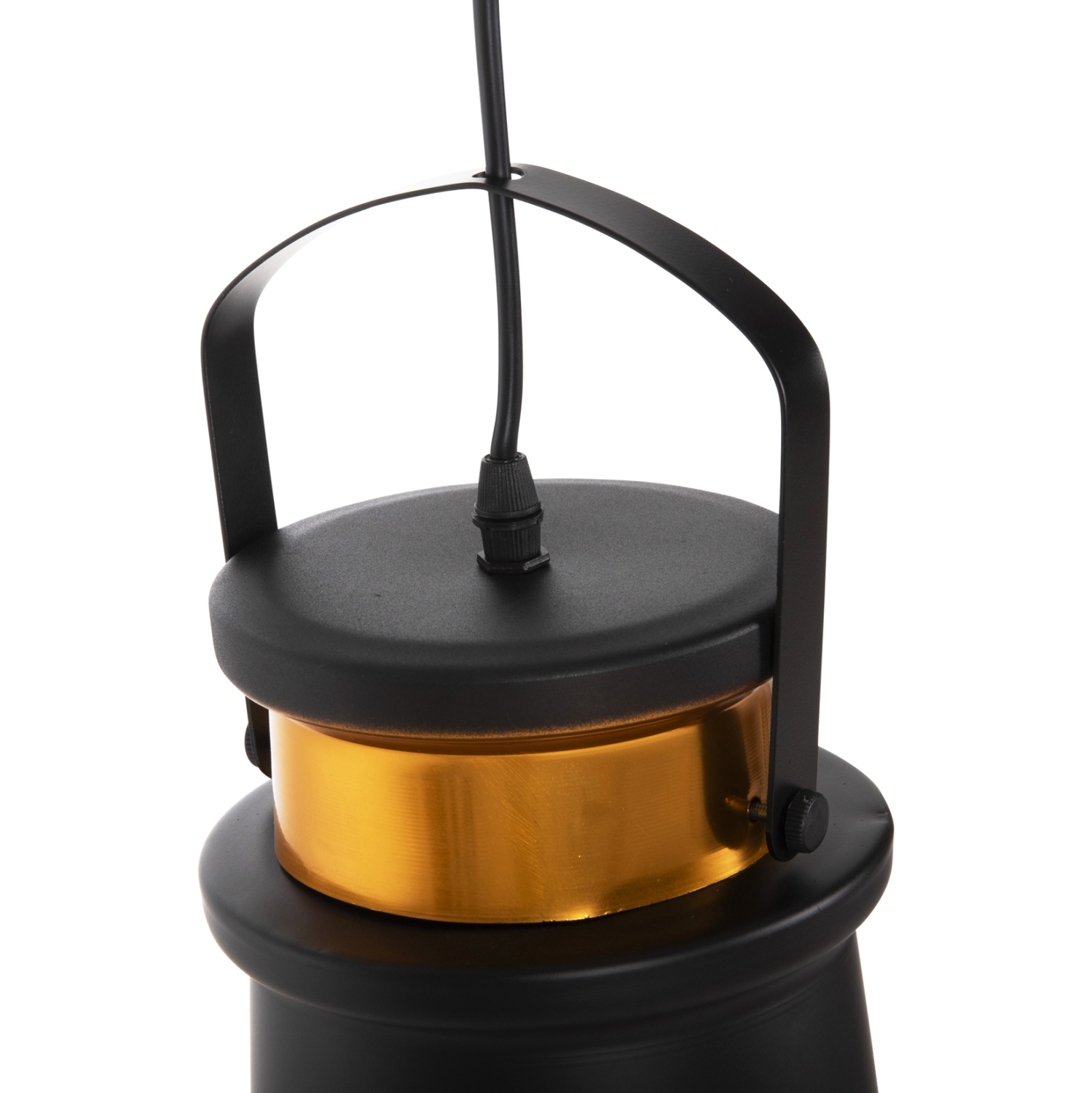 Ανακαλύψτε αυτό το νέο μας κρεμαστό φωτιστικό οροφής και ολοκληρώστε την διακόσμησή σας. Πρόκειται για ένα φωτιστικό με ΜΑΥΡΟ μακρόστενο κυλινδρικό καπέλο ΑΛΟΥΜΙΝΙΟΥ με χρυσή επιφάνεια στην εσωτερική πλευρά του φωτιστικού.