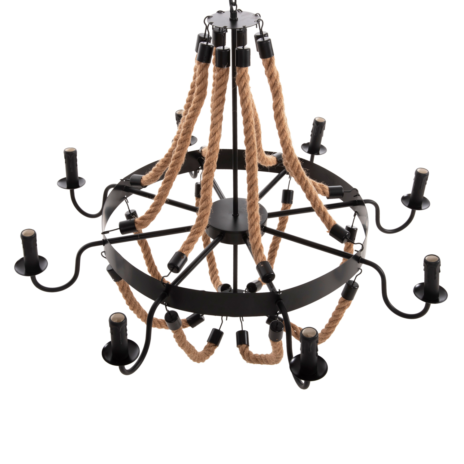 Το πολύφωτο ΗΜ4178 είναι μια ακόμα εντυπωσιακή προσθήκη στην γκάμα μας. Ο μαύρος μεταλλικός σκελετός του είναι κυκλικός και κρέμεται με αλυσίδα από την οροφή. Στον κυκλικό σκελετό είναι μονταρισμένα τα 8 φώτα σε μορφή κηροπηγίων, ενώ την εικόνα συμπληρώνουν τα σχοινιά που δίνουν την αίσθηση πολυελαίου στο φωτιστικό. Αυτό το πολύφωτο θα φωτίσει με άπλετο φως μεγάλους χώρους και θα εντυπωσιάσει με το όμορφο design του.