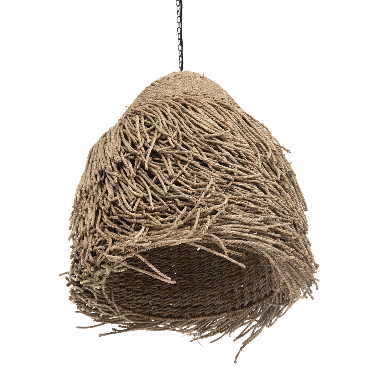 Αν επιθυμείτε να διακοσμήσετε το χώρο σας με ένα φωτιστικό σε boho στυλ, αυτό το φωτιστικό που είναι μια από τις νέες προσθήκες στην γκάμα μας είναι μια ασφαλής επιλογή. Πρόκειται για ένα μονόφωτο φωτιστικό με «καπέλο» σε σχήμα καμπάνας φτιαγμένο από αποξηραμένα seagrass, σε φυσικό χρώμα. Το χαρακτηριστικό, όμως αυτού του φωτιστικού είναι ότι διαθέτει πολύ μεγάλα κρόσια και λευκή αλυσίδα κρέμασης που δίνουν μια διαφορετική όψη σε σχέση με άλλα παρόμοια φωτιστικά.
