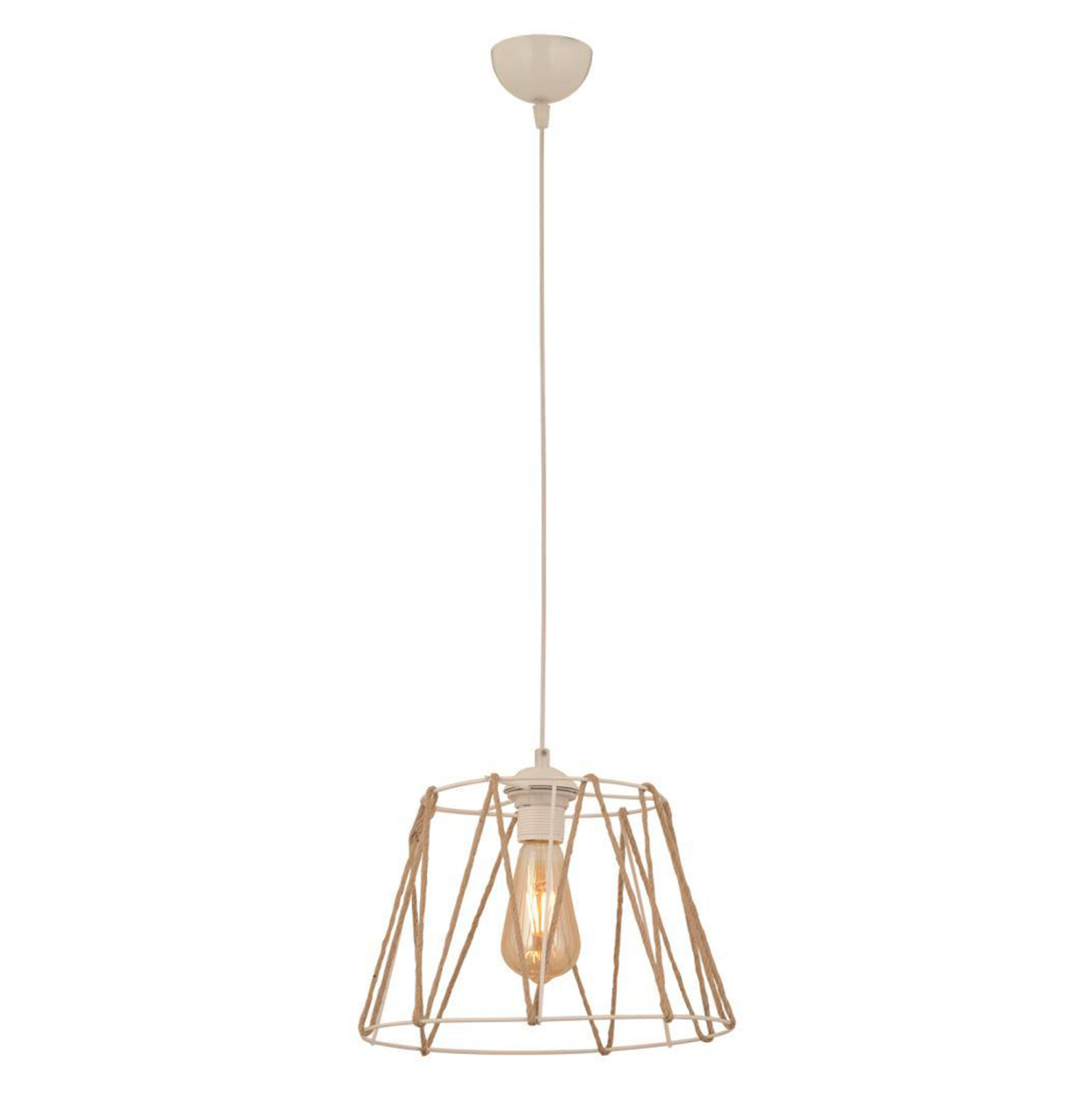 Φωτιστικό οροφής, σε λευκή απόχρωση με σχοινί σε μπεζ χρώμα.