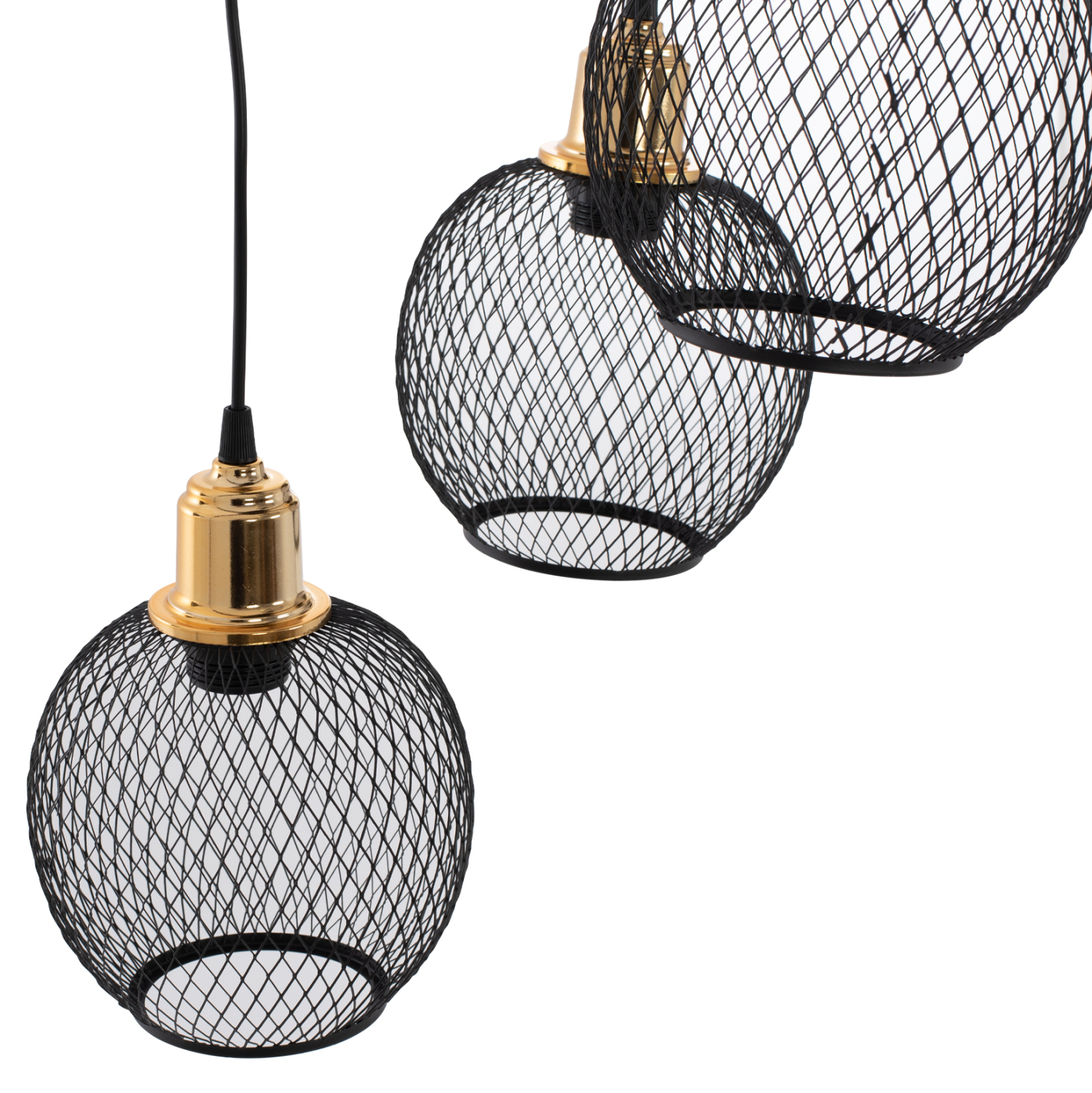 HM7689.01-Φωτιστικό οροφής —–Αυτό το 3-φωτο φωτιστικό οροφής συνδυάζει με μοναδικό τρόπο την μοντέρνα με την βιομηχανική αισθητική που την προδίδουν τα μαύρα μεταλλικά πλέγματα σε σφαιρικό σχήμα στα καπέλα του φωτιστικού. Όλη η σύνθεση κρέμεται από μια κυκλική βάση με τα φώτα σε ασύμμετρο ύψος. Η ευχάριστη διχρωμία συμπληρώνεται με τις χάλκινες λεπτομέρειες στα καλύμματα των ντουί στο επάνω μέρος των καπέλων. Το εντυπωσιακό αυτό φωτιστικό θα δώσει ένα εντελώς διαφορετικό look στον χώρο σας και θα τραβήξει τα βλέμματα!