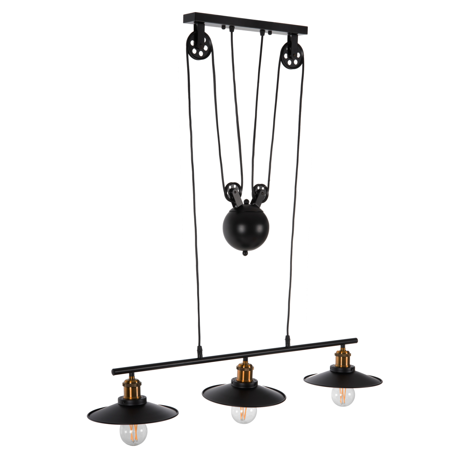 Ανακαλύψτε αυτό το νέο μας κρεμαστό 3-φωτο οροφής και ολοκληρώστε την διακόσμησή σας. Πρόκειται για ένα φωτιστικό με μοντέρνα σχεδίαση που θα τραβήξει τα βλέμματα. Η κομψότητα επιτείνεται από το γεγονός ότι στην κορυφή των καπέλων υπάρχουν χρυσές λεπτομέρειες.