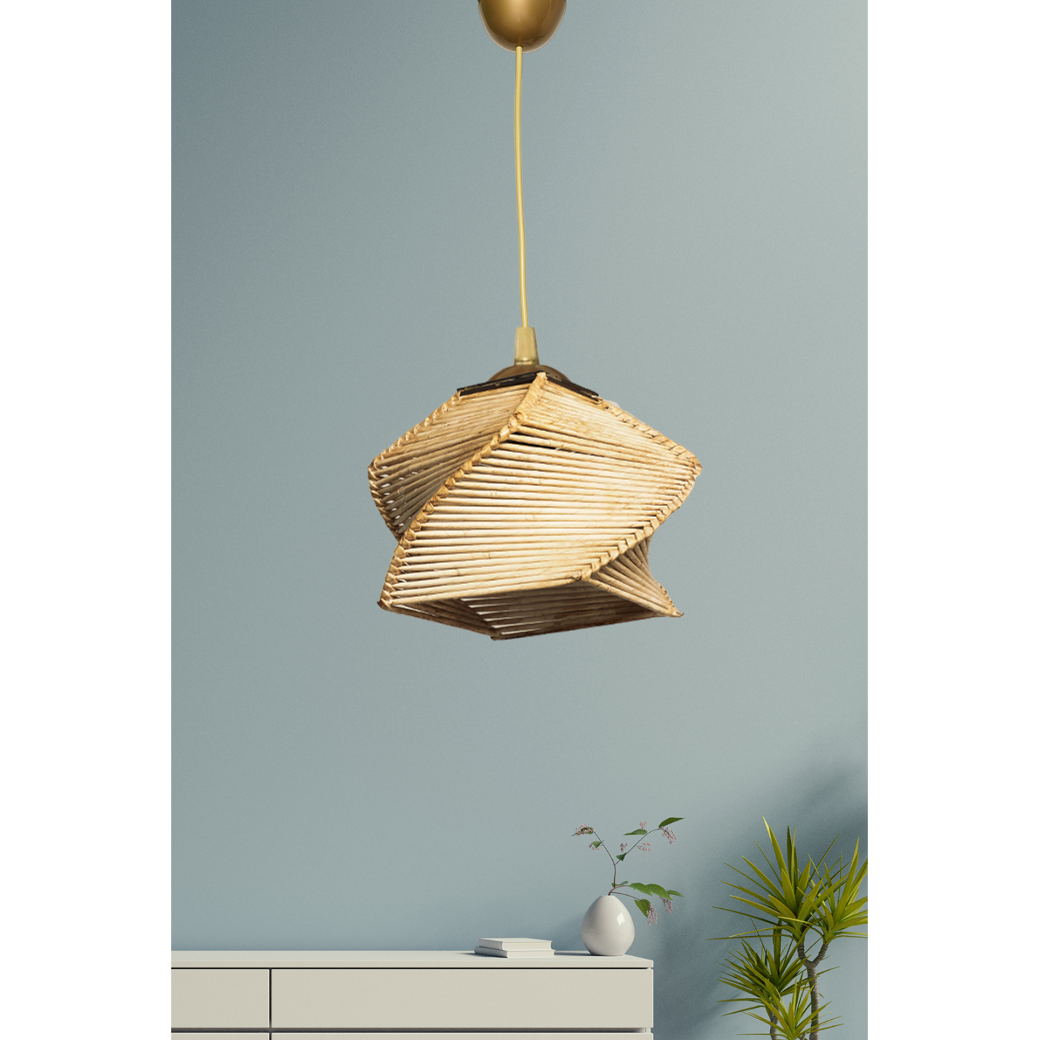 Μοντέρνο κρεμαστό φωτιστικό οροφής,από bamboo υλικό σε φυσική απόχρωση.